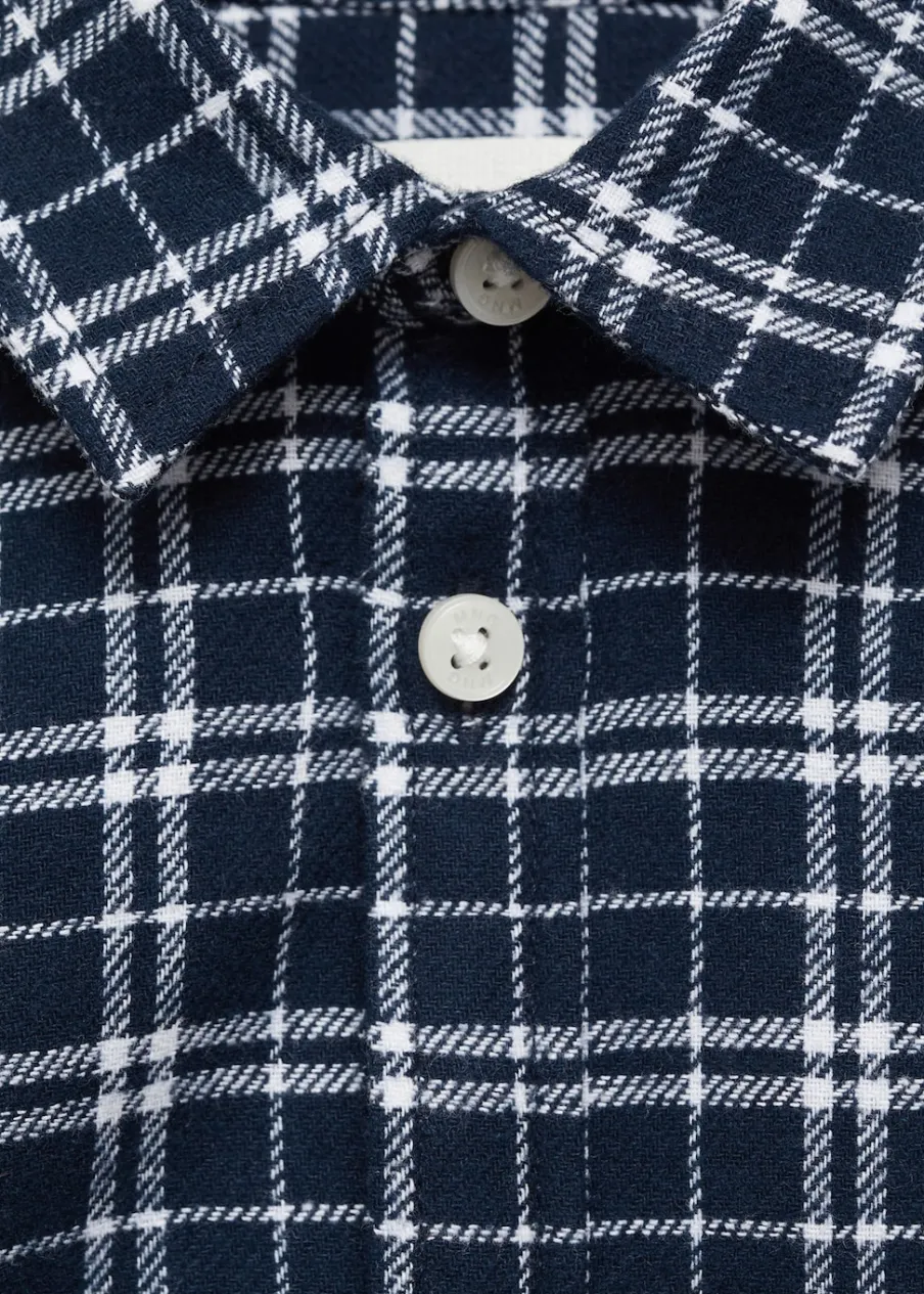Bawełna 100%. Model prosty. Deseń w kratę. Koszulowy kołnierz. Długi rękaw z zapięciem na guziki. Krój regular. Zapięcie na guziki z przodu.