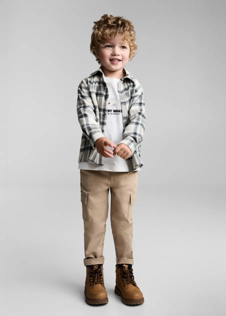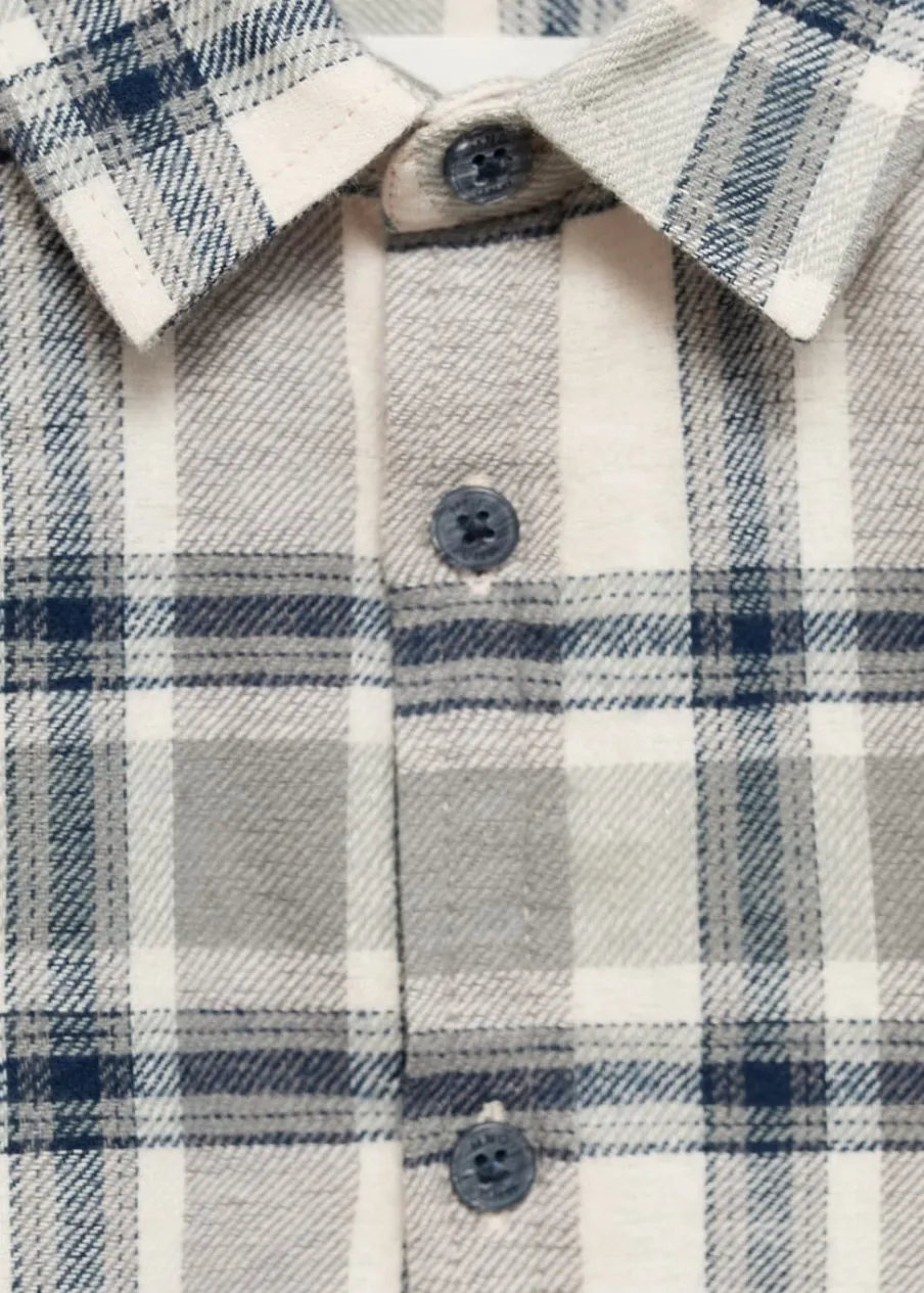 Powrót do szkoły. Bawełna 100%. Model prosty. Deseń w kratę. Koszulowy kołnierz. Zapięcie na guziki. Długi rękaw z guzikami na mankietach.