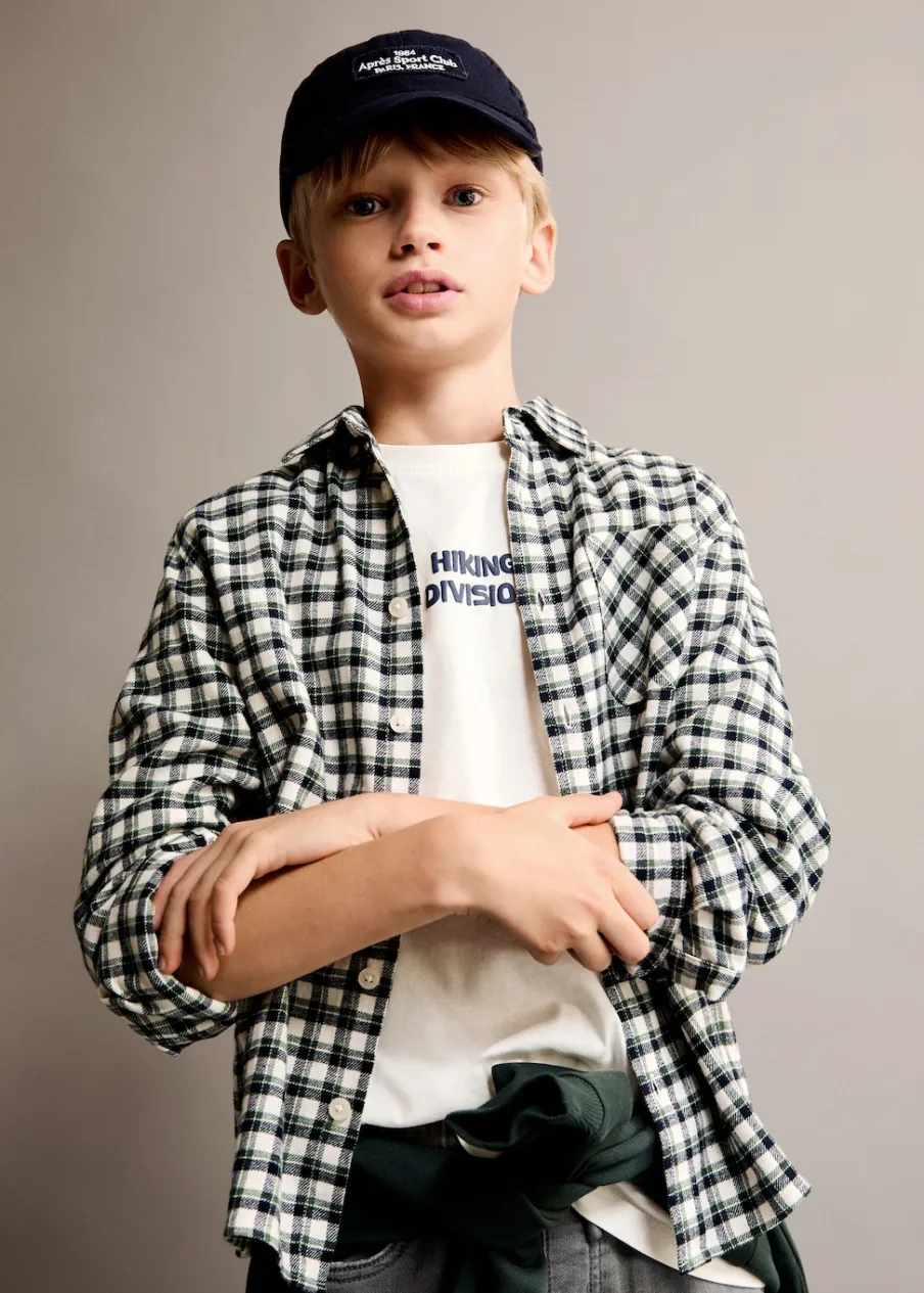 Bawełna 100%. Deseń w kratę. Koszulowy kołnierz. Kieszeń nakładana. Długi rękaw z guzikami na mankietach. Model prosty. Zapięcie na guziki z przodu.