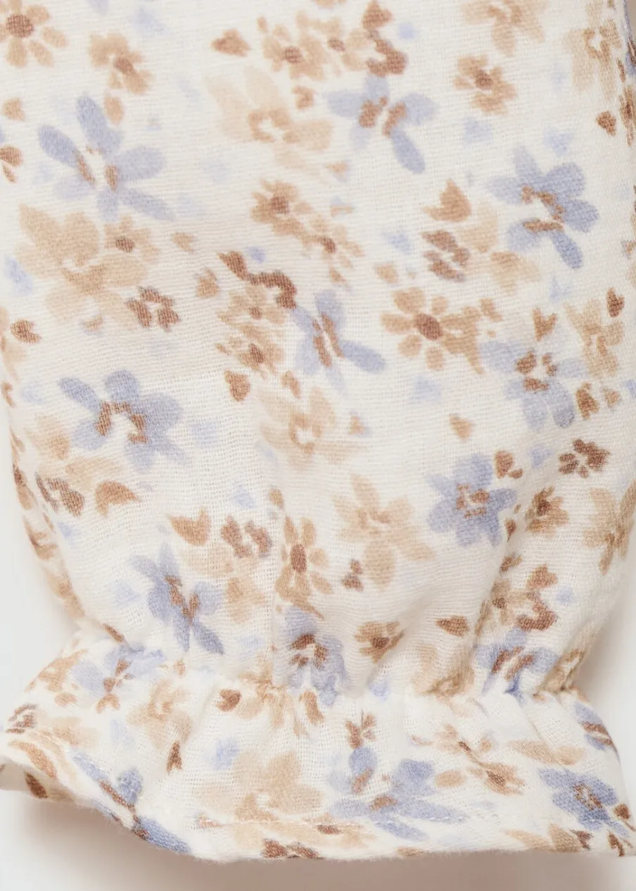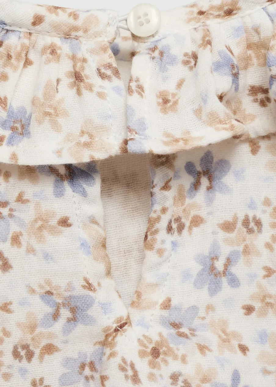 Powrót do szkoły. Bawełna 100%. Model prosty. Okrągły dekolt. Falbanki pod szyją. Długi rękaw. Zapięcie na guzik z tyłu.