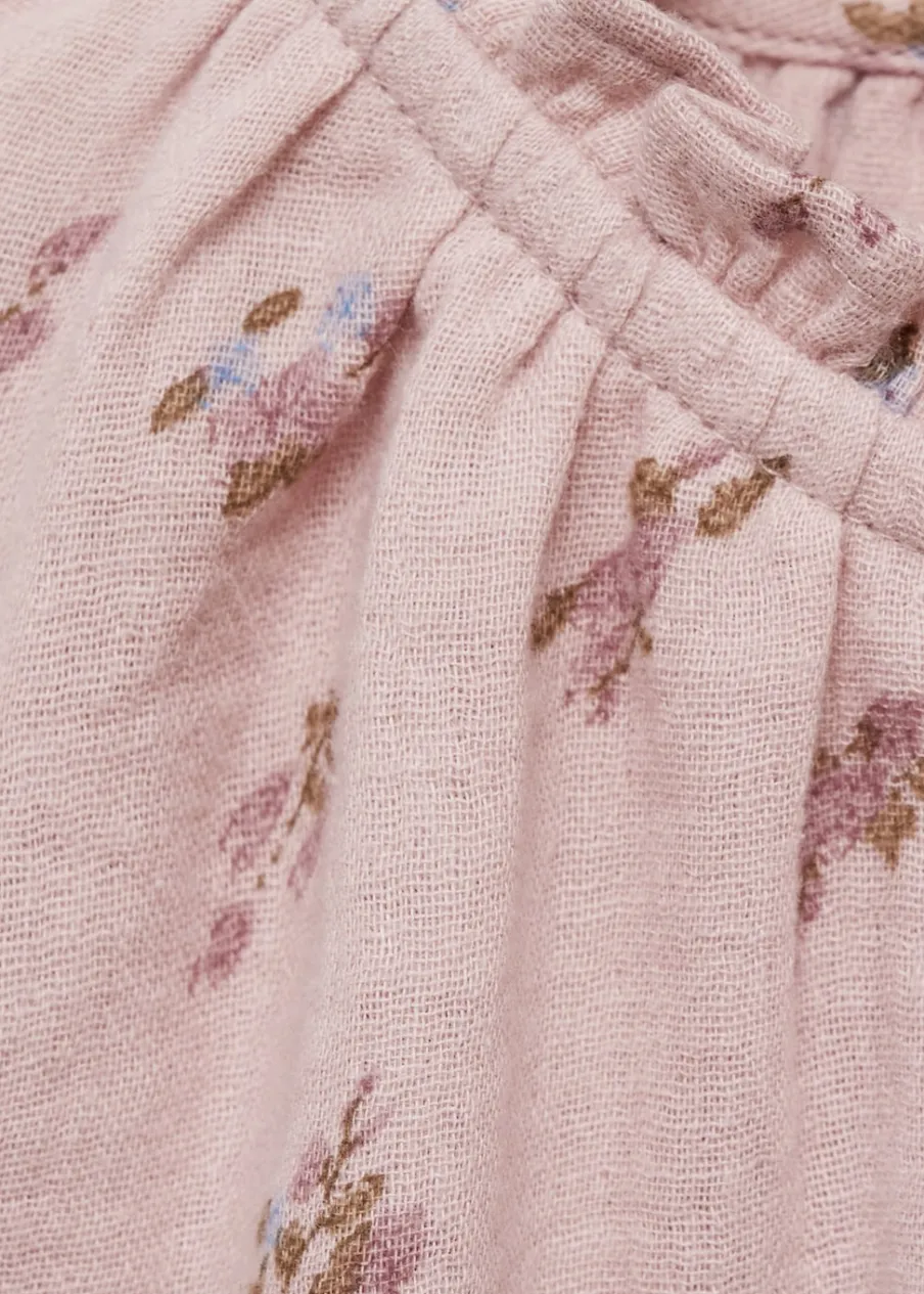 Bawełna 100%. Model prosty. Kwiatowy wzór. Okrągły dekolt. Długi rękaw. Z falbanami. Zapięcie na guziki z przodu.