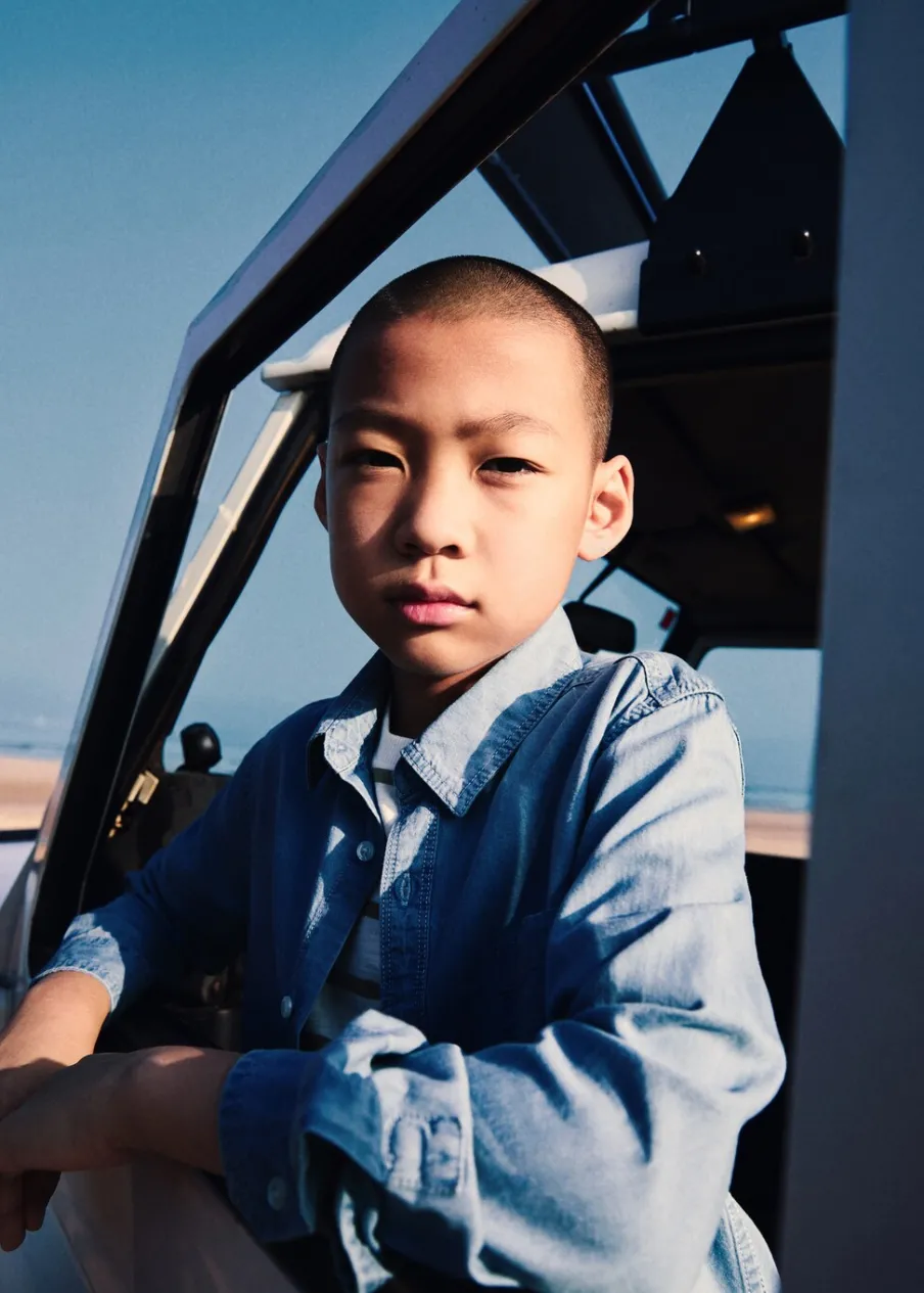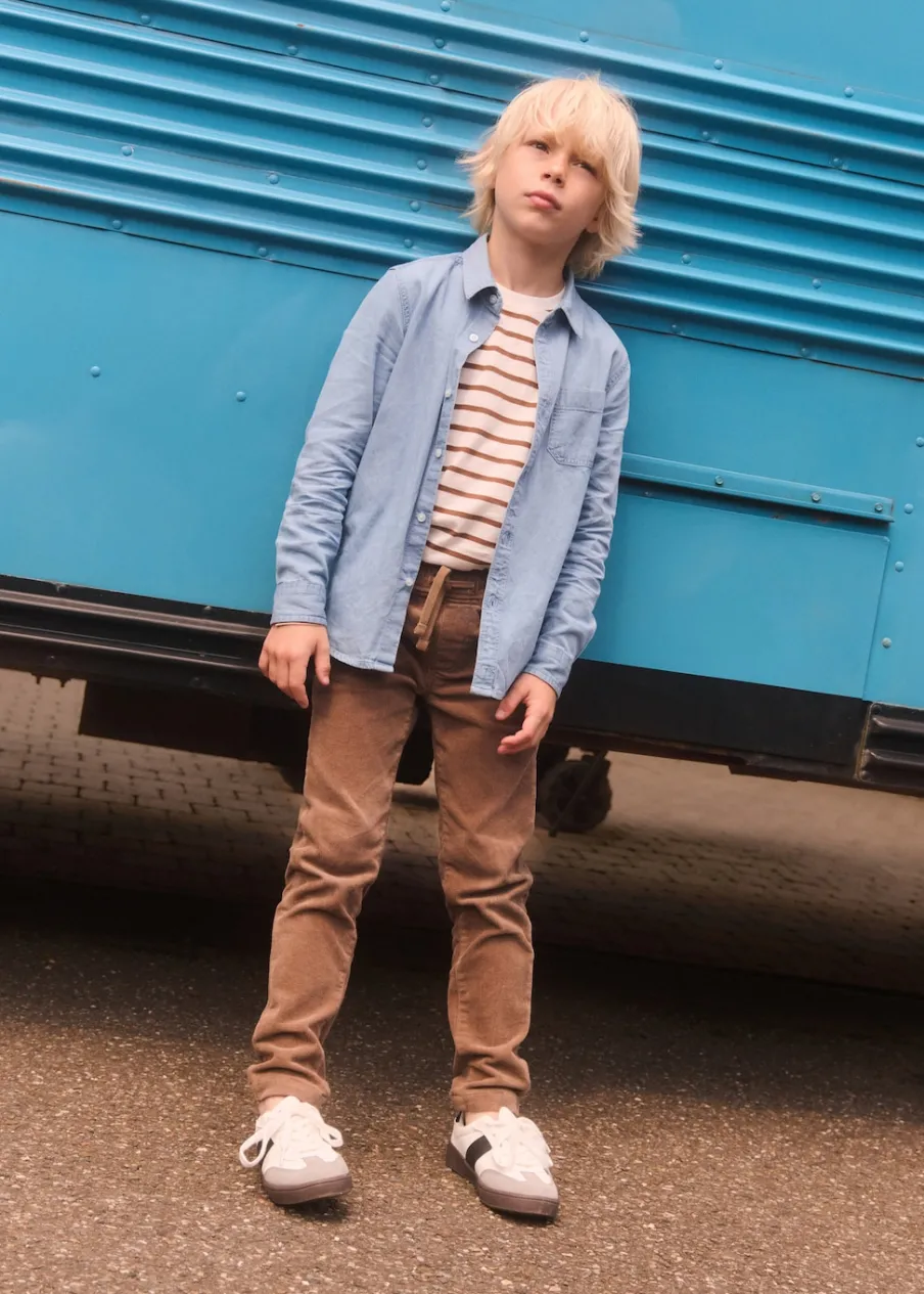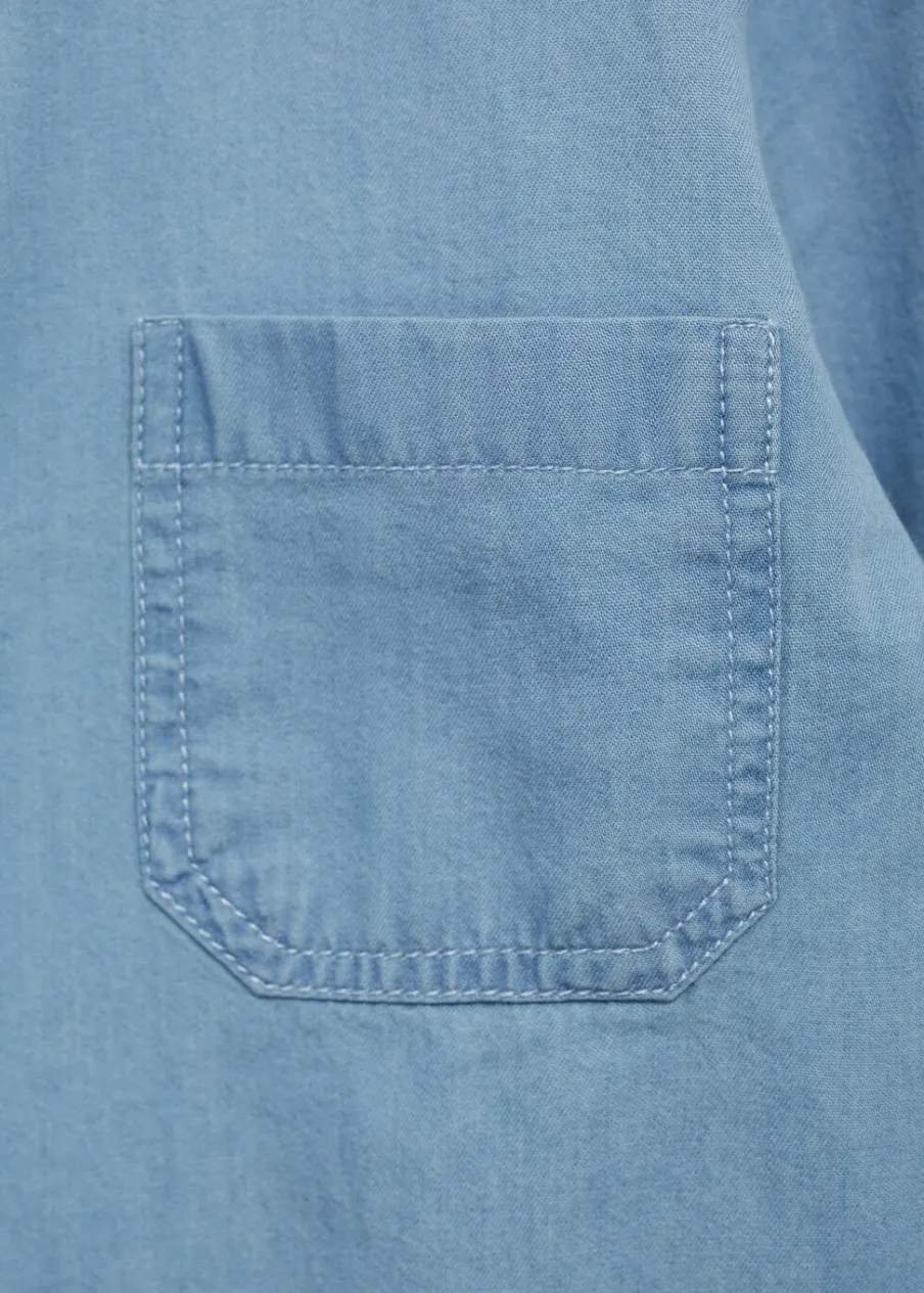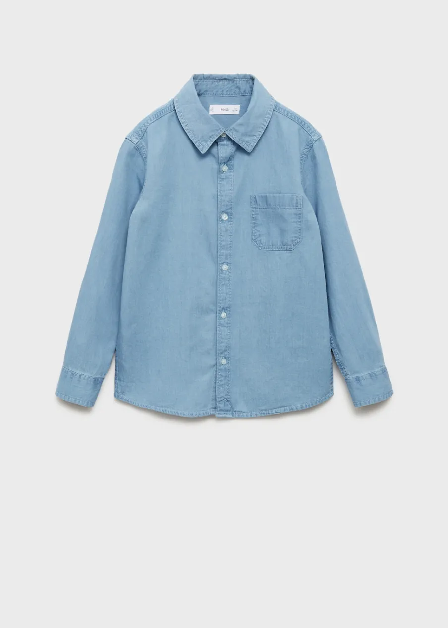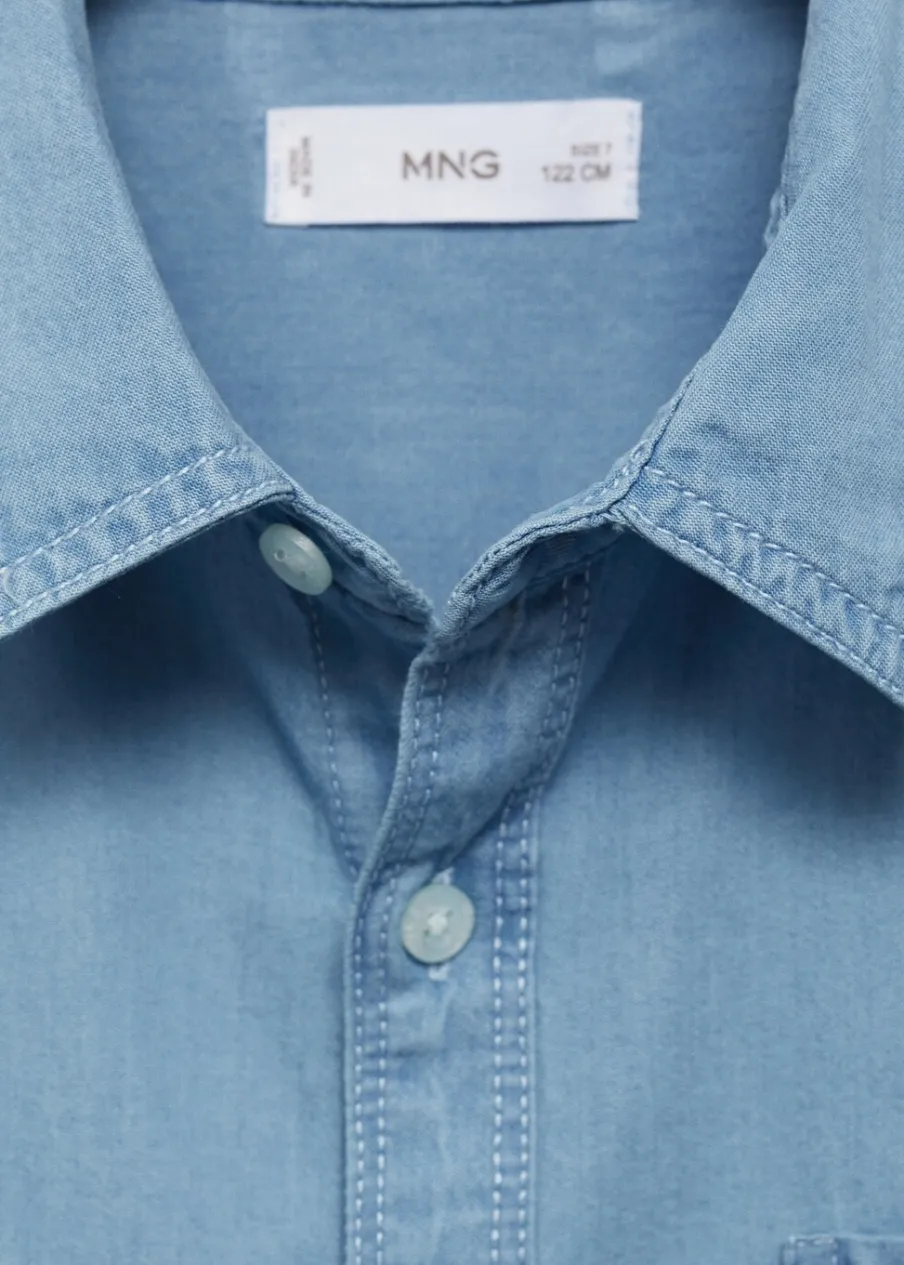 Kolekcja Powrót do szkoły. Krój regular. Koszulowy kołnierz. Długi rękaw z guzikami na mankietach. Tkanina bawełniana w dżinsowym stylu. Kieszeń nakładana na piersi. Zapięcie z przodu na guziki.