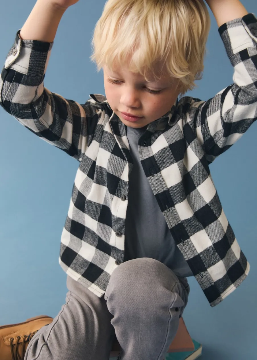 Bawełna 100%. Model prosty. Deseń w kratę. Koszulowy kołnierz. Zapięcie na guziki. Długi rękaw z zapięciem na guziki.