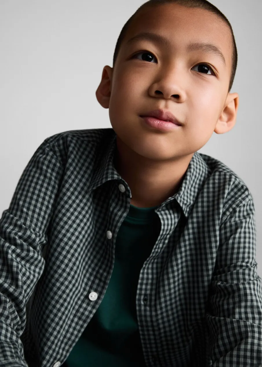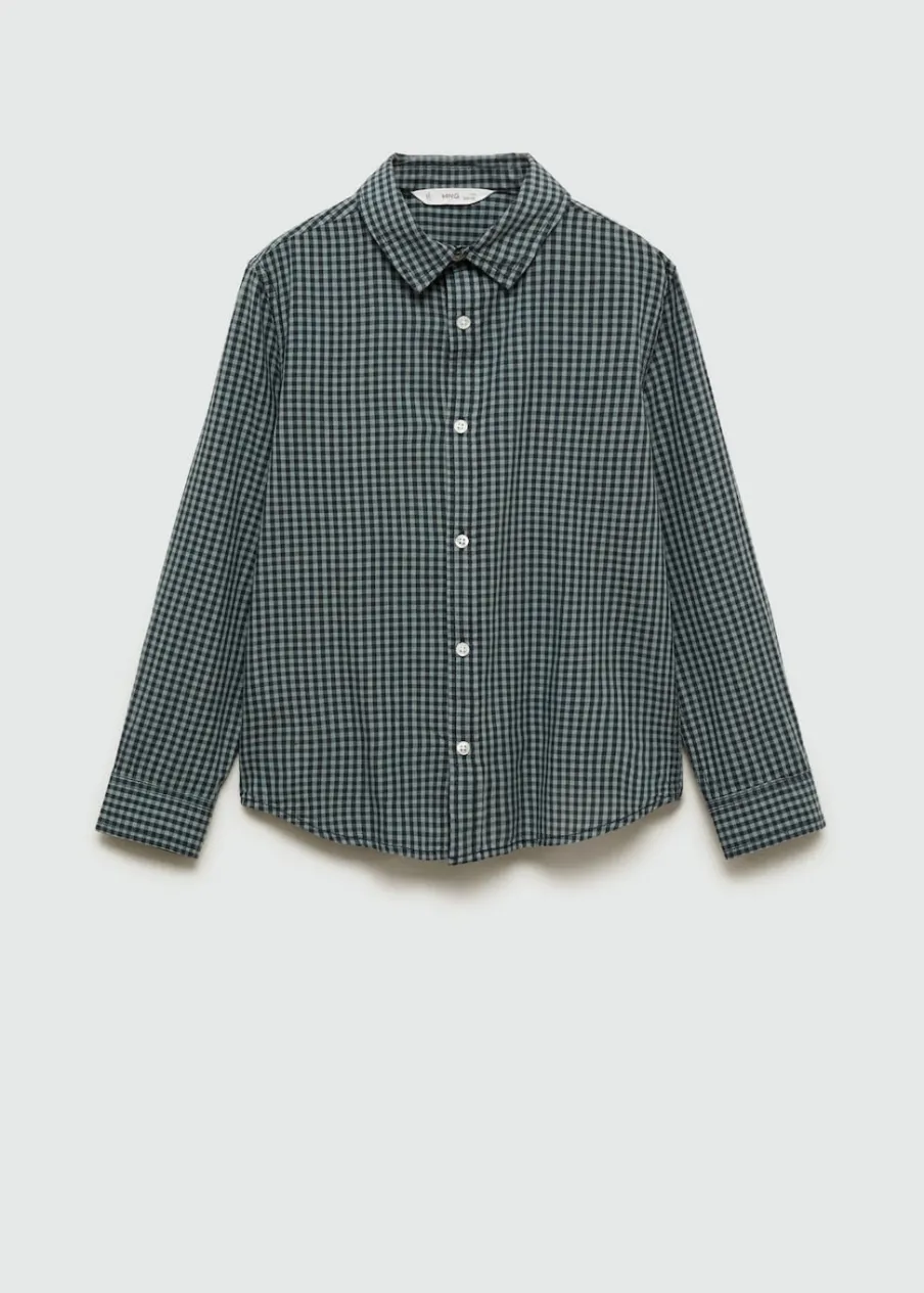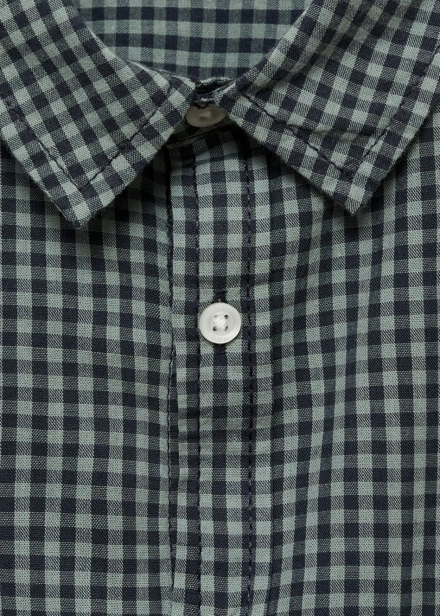 100% bomull. Model prosty. Wzór w drobną kratkę. Krój regular. Koszulowy kołnierz. Długi rękaw z guzikami na mankietach. Zapięcie na guziki z przodu.