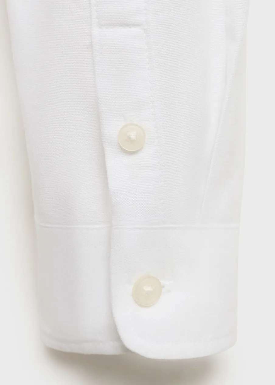 Tkanina z 100% bawełny. Tkanina Oxford. Model prosty. Koszulowy kołnierz. Mankiety koszulowe na guziki. Zapięcie na guziki z przodu.