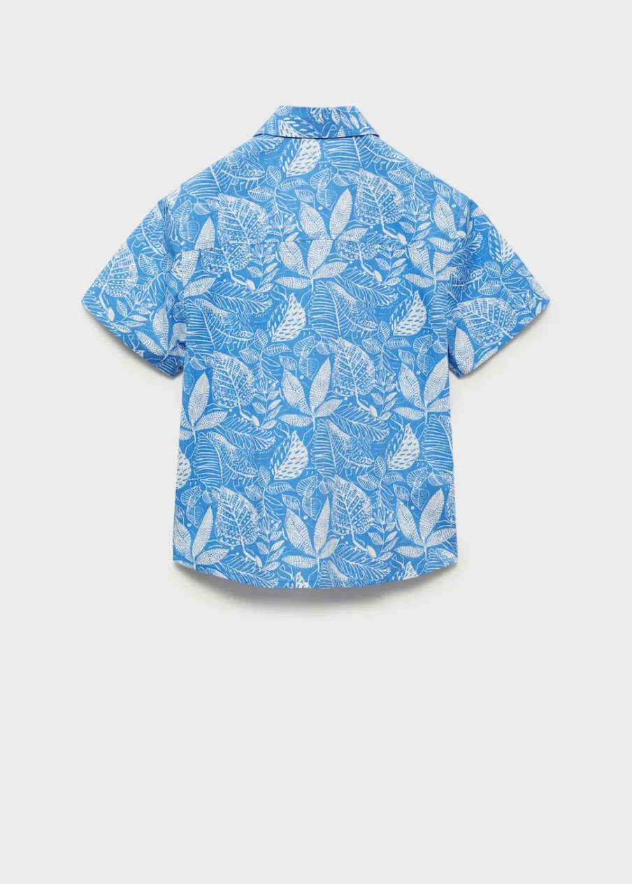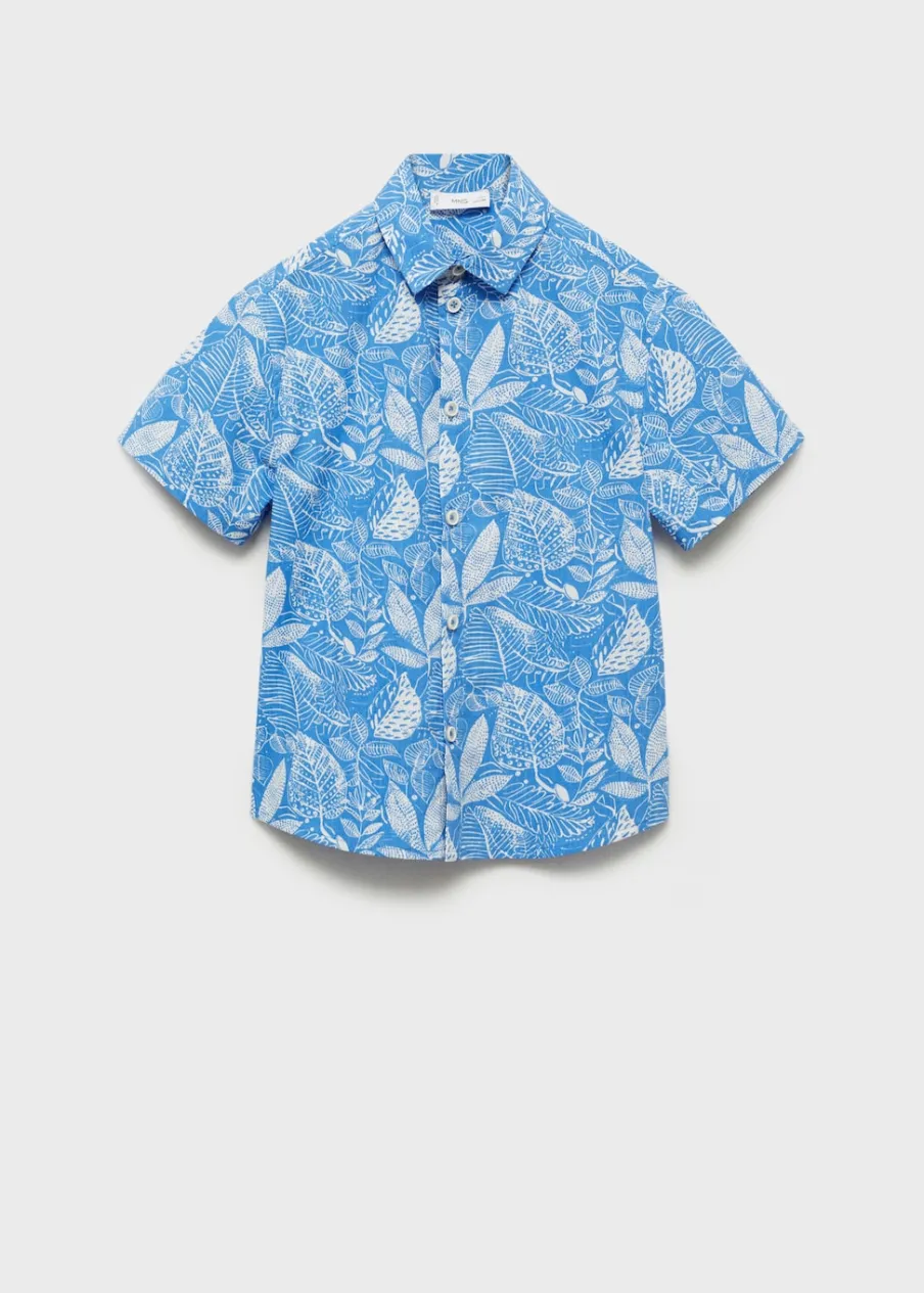 Tkanina z 100% bawełny. Krótki rękaw. Koszulowy kołnierz. Zapięcie na guziki z przodu. Zaokrąglony dół.