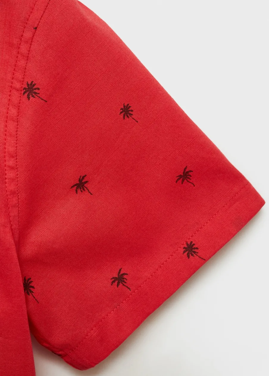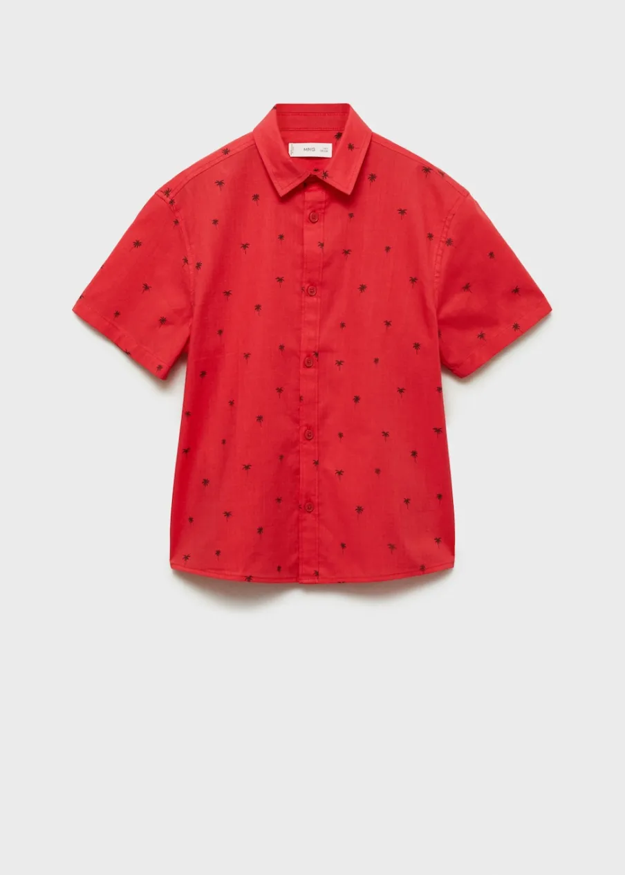 Bawełna 100%. Model prosty. Z nadrukami. Wzór w palmy. Krótki rękaw. Koszulowy kołnierz. Zapięcie na guziki z przodu.