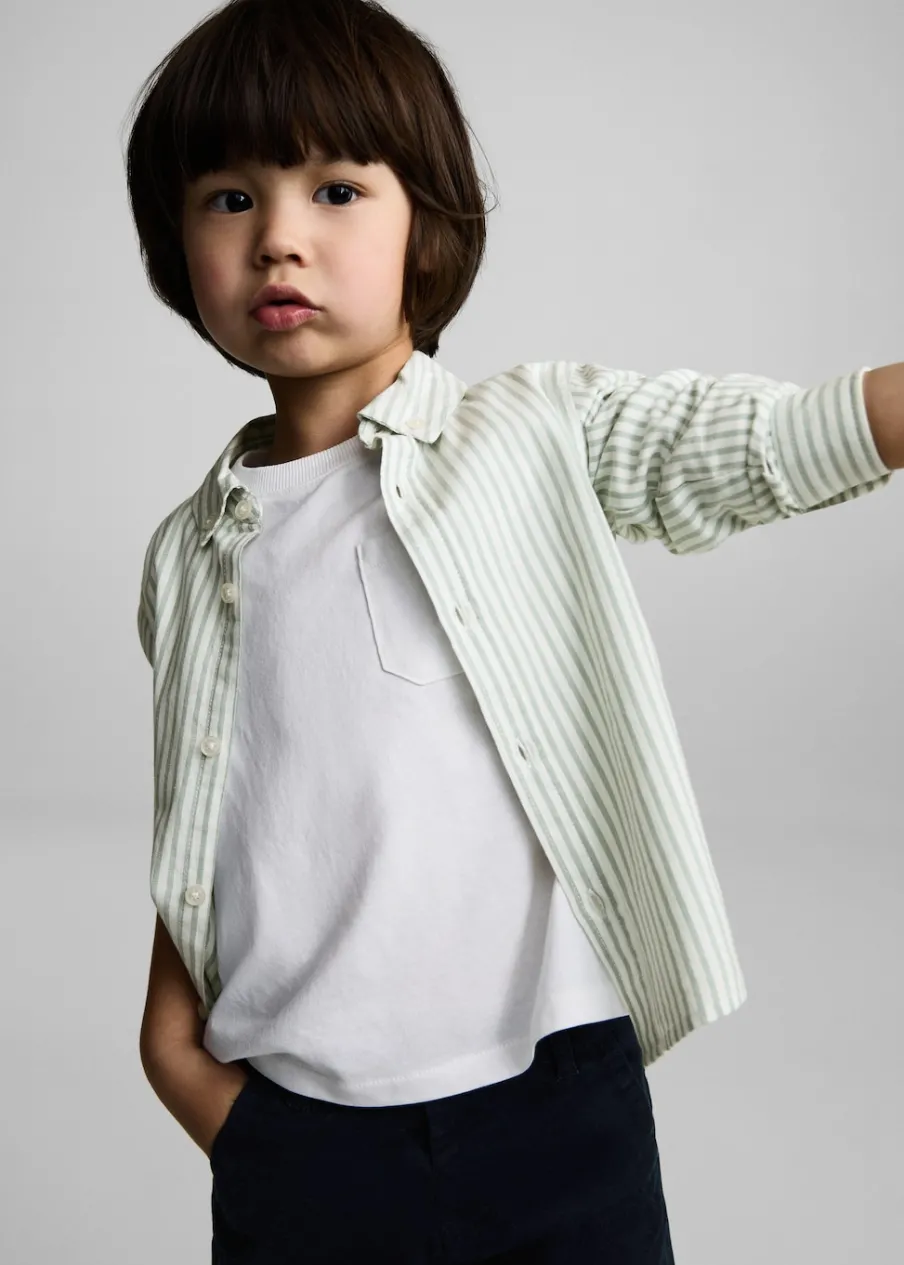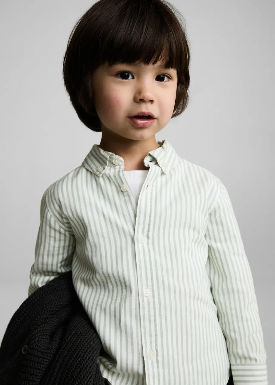 OpisTkanina z 100% bawełny. Tkanina Oxford. Deseń w pasy. Długi rękaw. Koszulowy kołnierz. Zapinane mankiety. Zaokr…