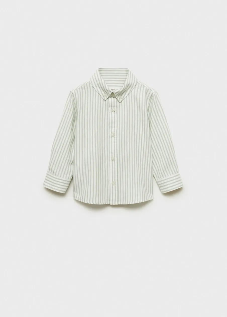 Tkanina z 100% bawełny. Tkanina Oxford. Deseń w pasy. Długi rękaw. Koszulowy kołnierz. Zapinane mankiety. Zaokrąglony dół. Zapięcie na guziki.