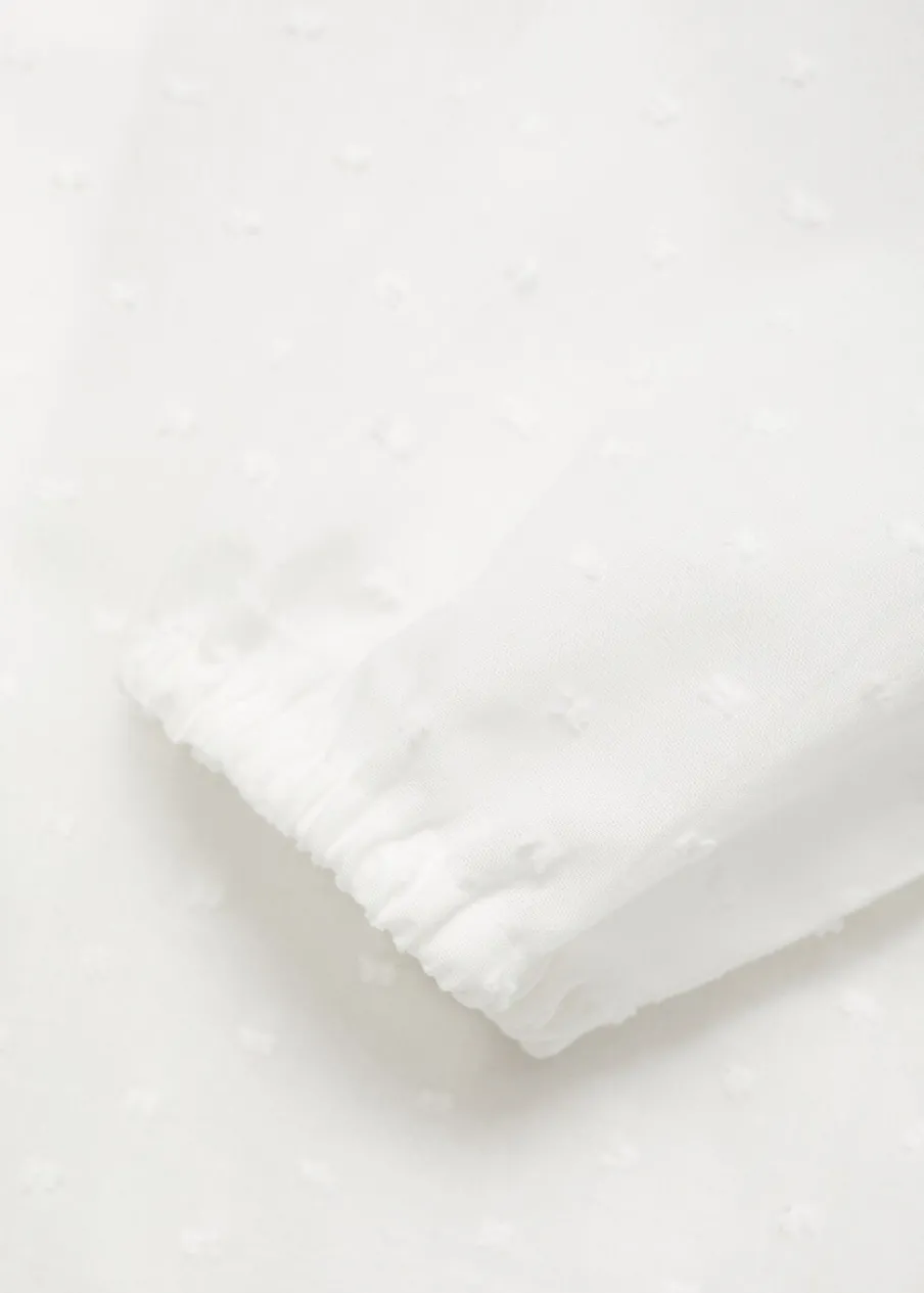 OpisTkanina z bawełną. Model prosty. Kołnierzyk bebe. Haftowane detale. Długi rękaw. Zapięcie z tyłu na guziki.