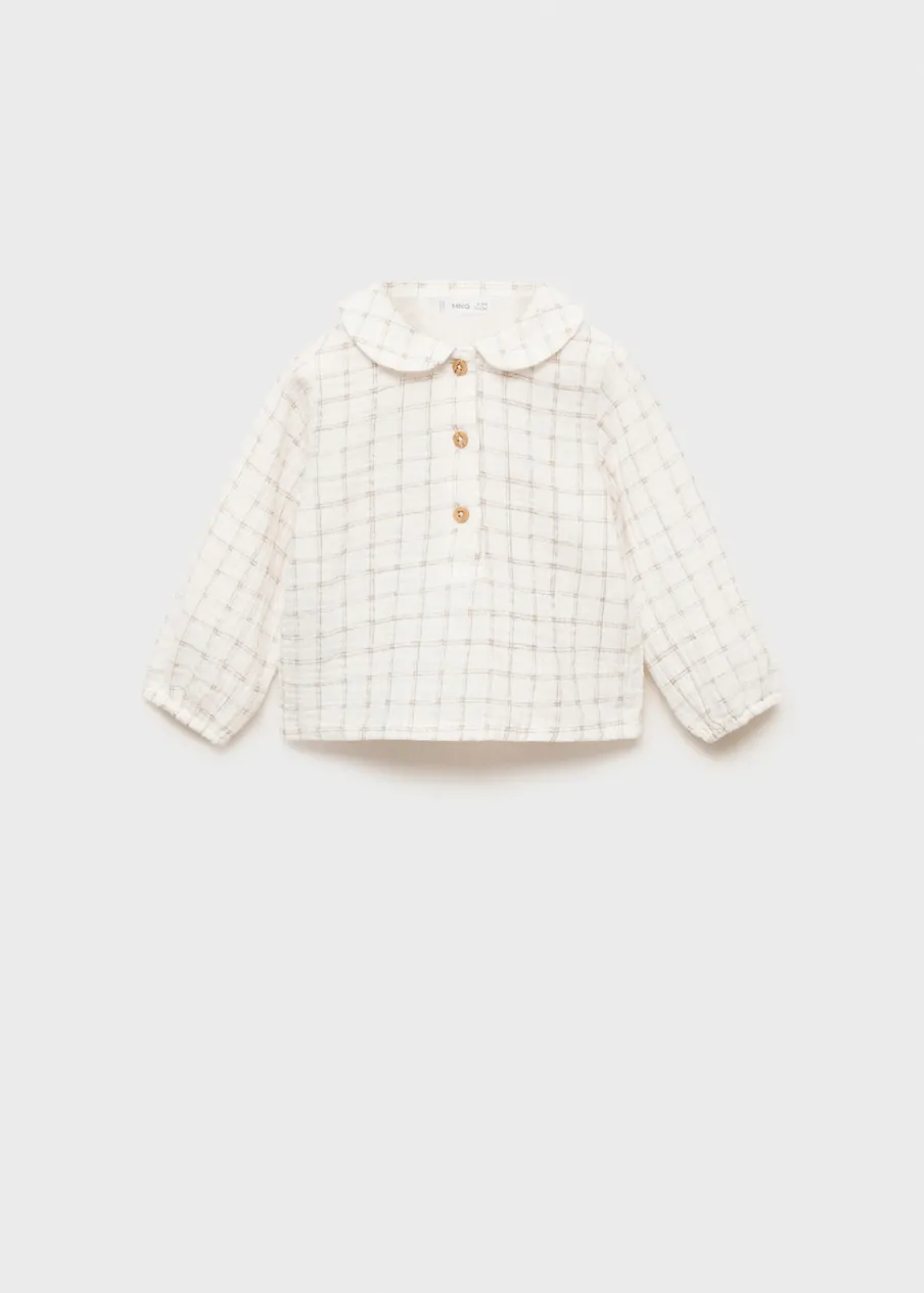 Opis100% bomull. Deseń w kratę. Model prosty. Kołnierzyk bebe. Długi rękaw. Zapięcie na guziki.