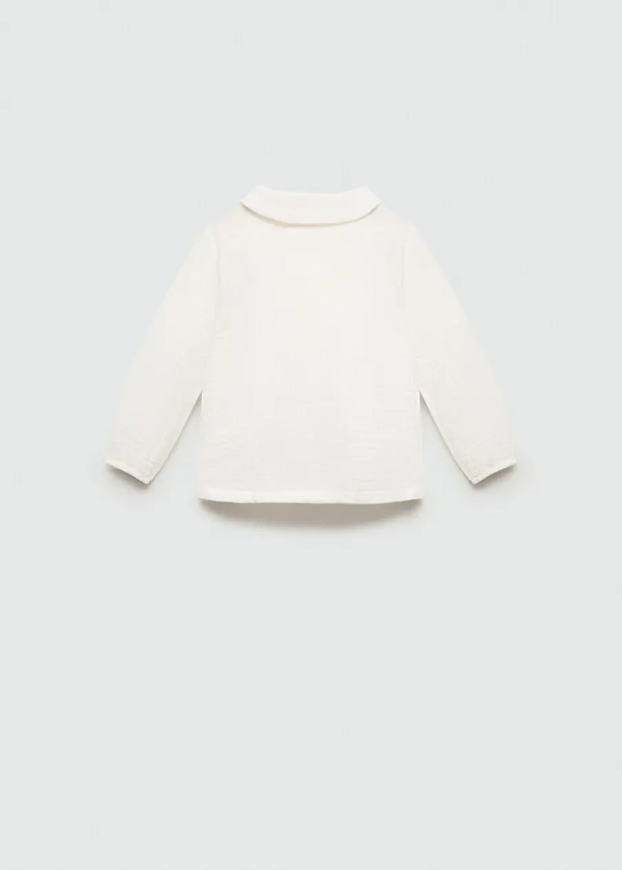 Opis100% bomull. Model prosty. Kreszowana tkanina. Kołnierzyk bebe. Długi rękaw. Dwurzędowe zapięcie.