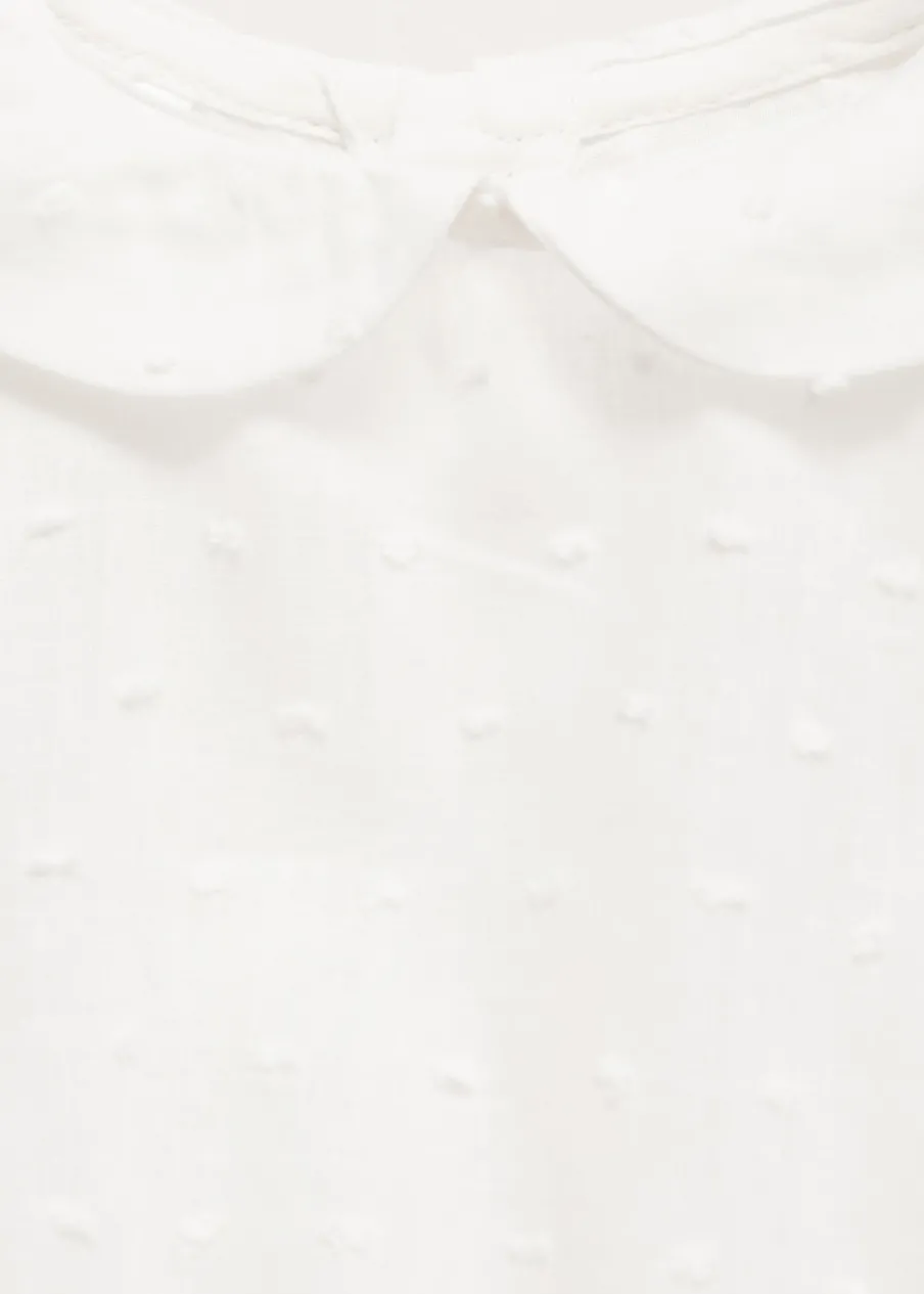 Opis100% bomull. Model prosty. Kołnierzyk bebe. Tkanina plumeti. Długi bufiasty rękaw. Zapięcie z tyłu na guziki…