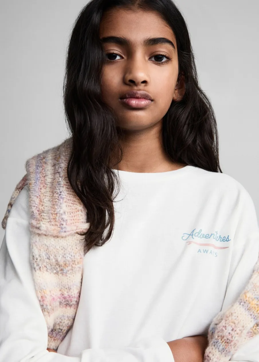 Kolekcja Powrót do szkoły. 100% bomull. Model prosty. Wzór w litery. Haftowane detale. Okrągły dekolt. Długi rękaw.
