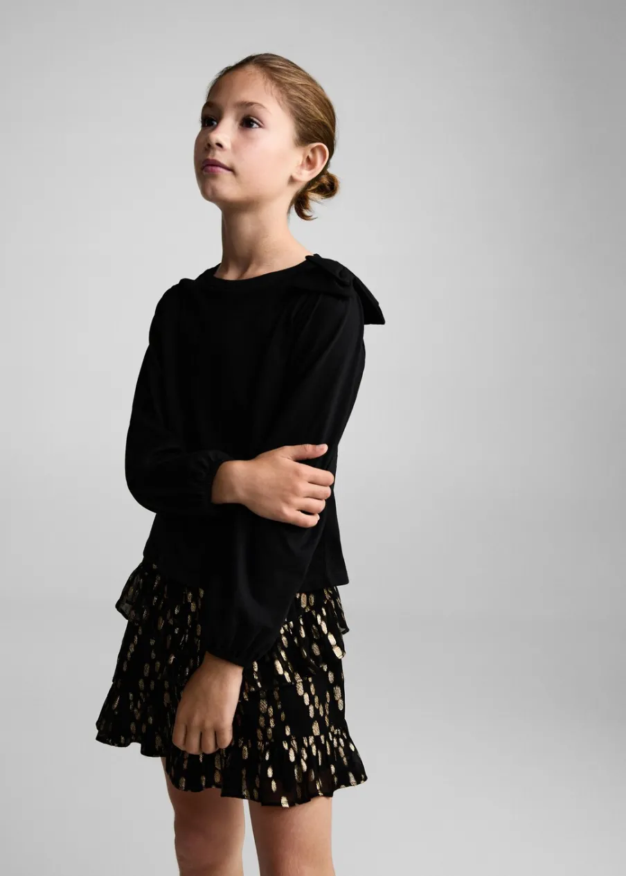 Bawełna 100%. Okrągły dekolt. Długi rękaw. Ozdobna kokardka. Kolekcja wieczorowa i imprezowa.