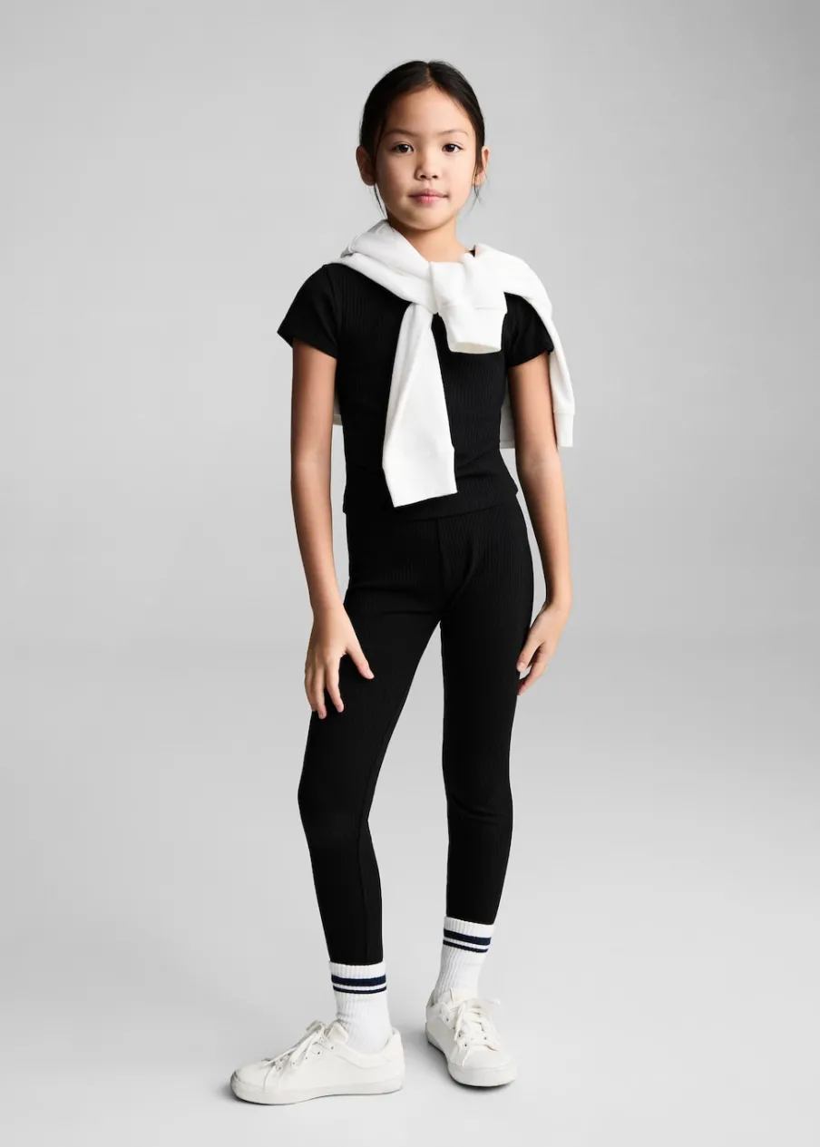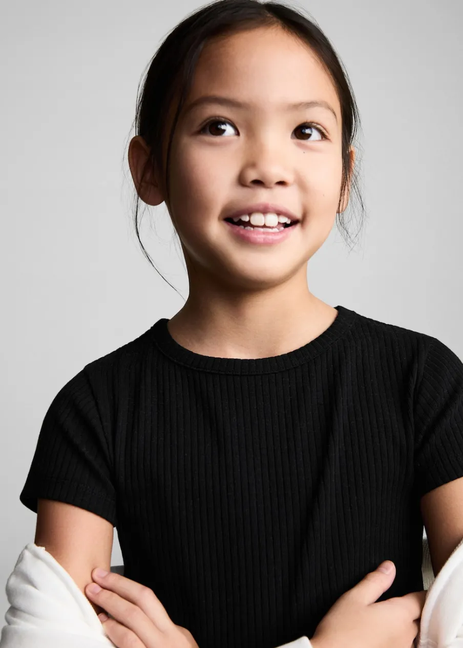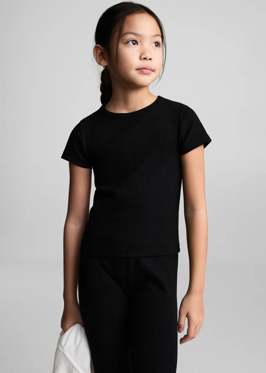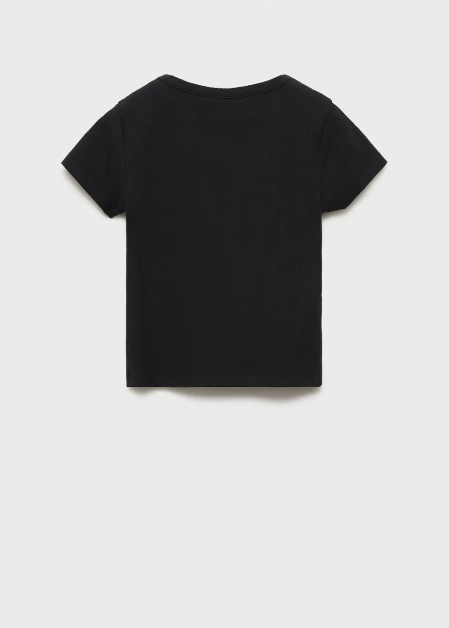 OpisKrótki rękaw. Prążkowana tekstura. Tkanina z bawełną. Okrągły dekolt.