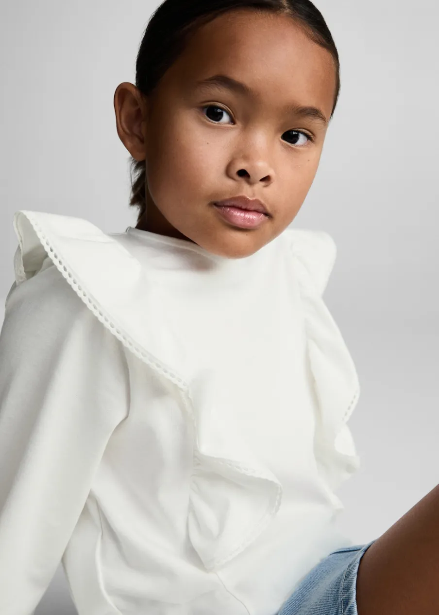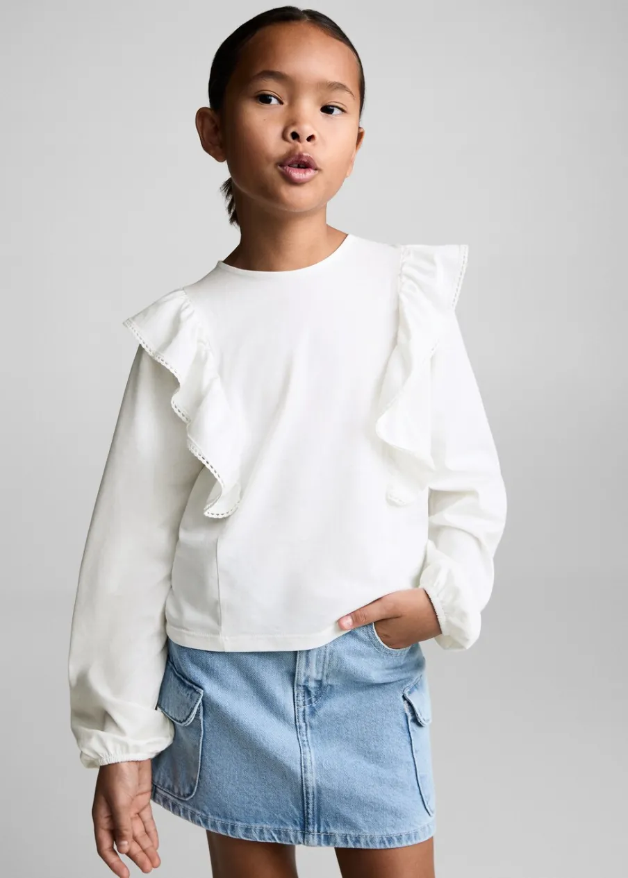 OpisPowrót do szkoły. Bawełna 100%. Model prosty. Okrągły dekolt. Długi rękaw. Z falbanami. Zapięcie na guzik z …