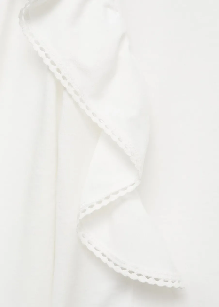 Powrót do szkoły. Bawełna 100%. Model prosty. Okrągły dekolt. Długi rękaw. Z falbanami. Zapięcie na guzik z tyłu.
