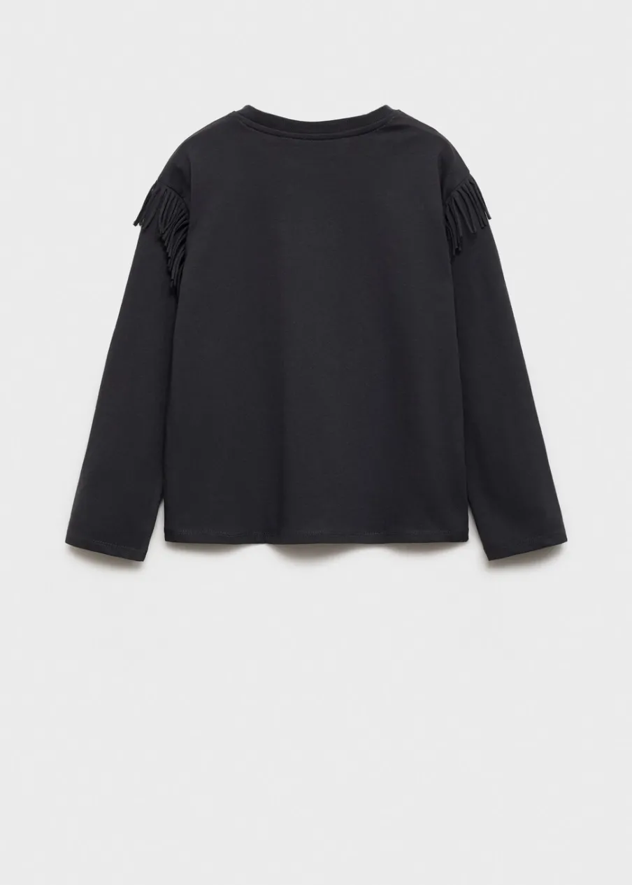 OpisBawełna 100%. Model prosty. Haftowany detal. Okrągły dekolt. Długi rękaw. Detal z frędzli.