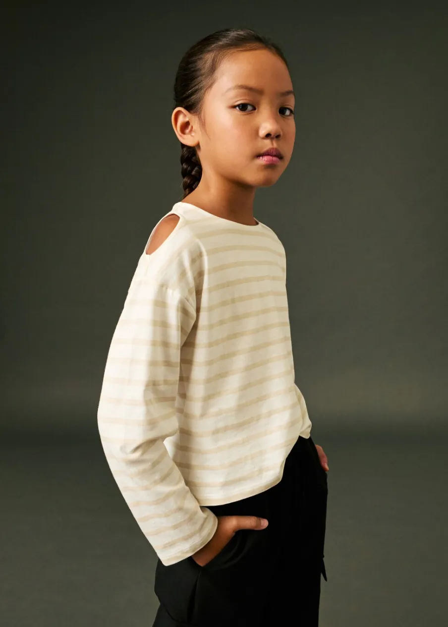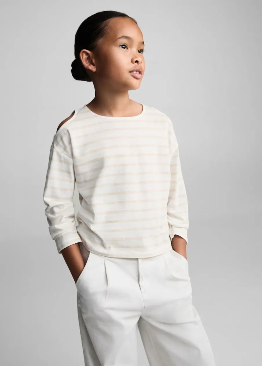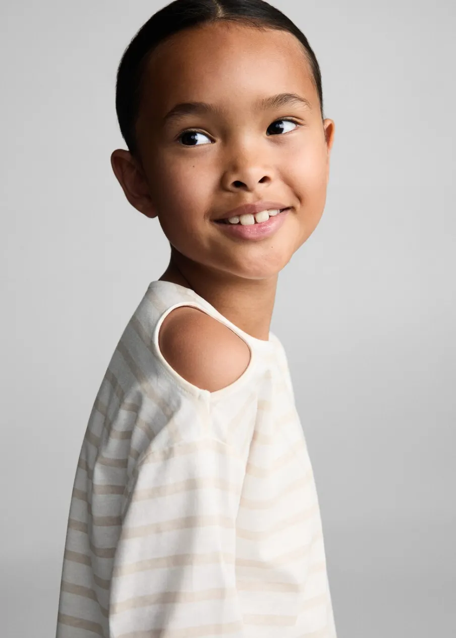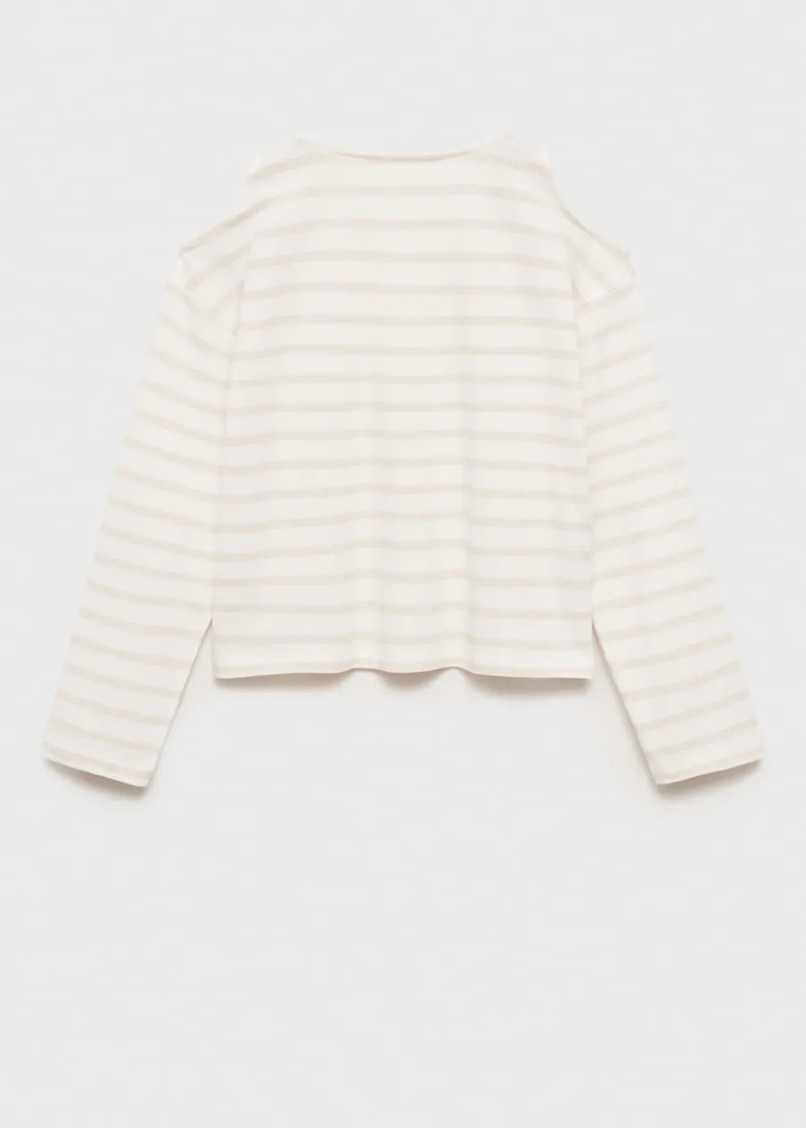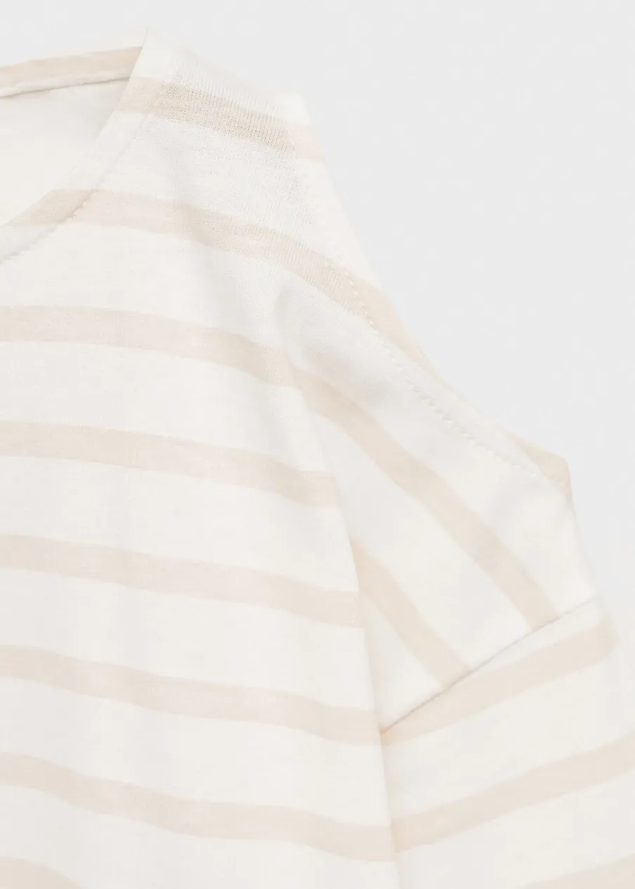Opis100% bomull. Model prosty. Wzór w pasy. Okrągły dekolt. Rozcięcia na ramionach. Długi rękaw.