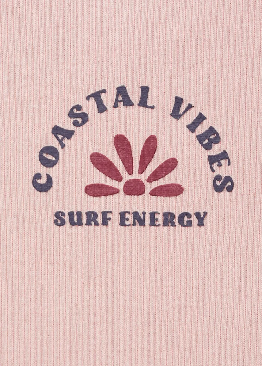 Kolekcja Powrót do szkoły. 100% bomull. Prążkowana tekstura. Kolor z efektem sprania. Okrągły dekolt. Krótki rękaw. Nadruk.