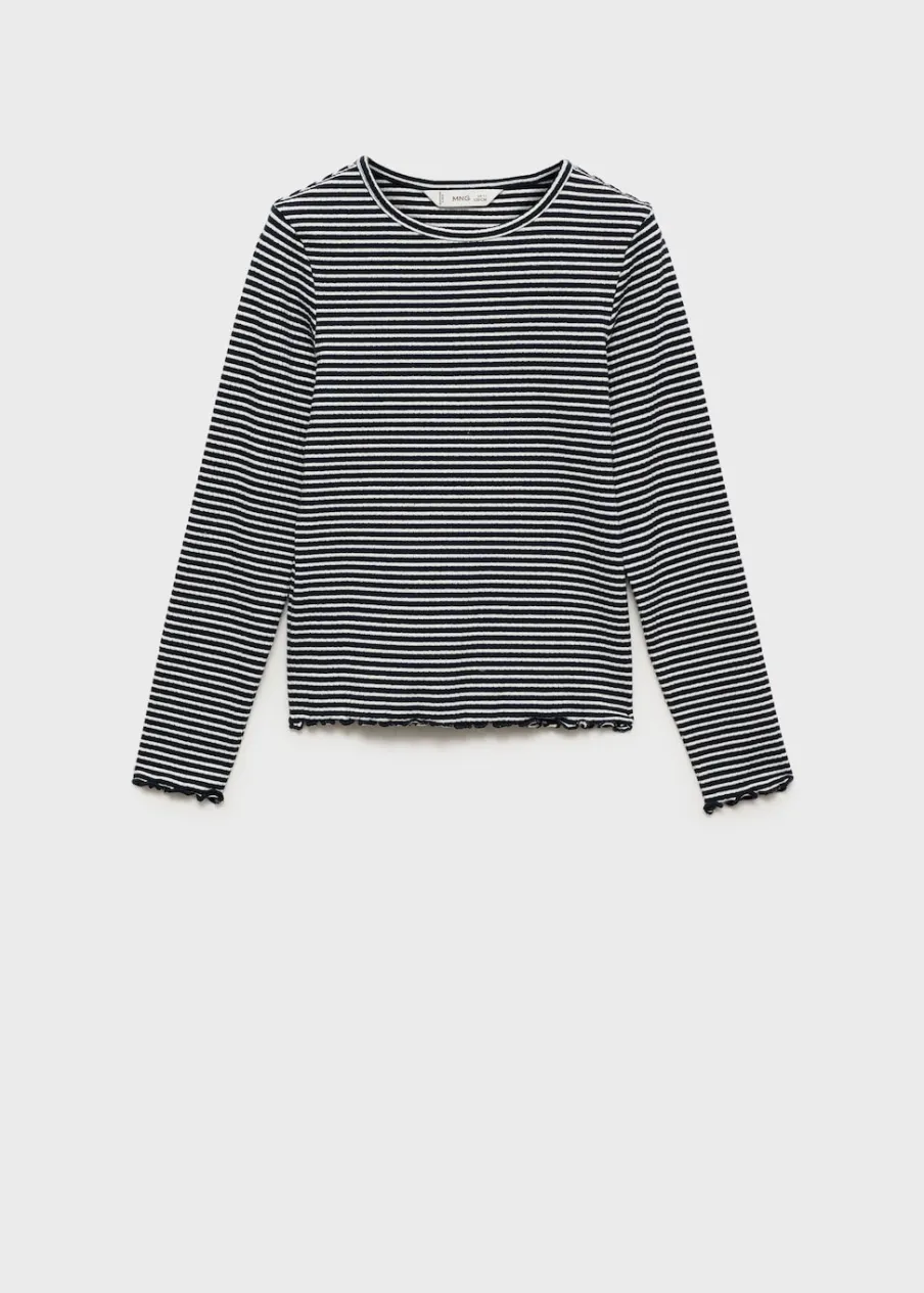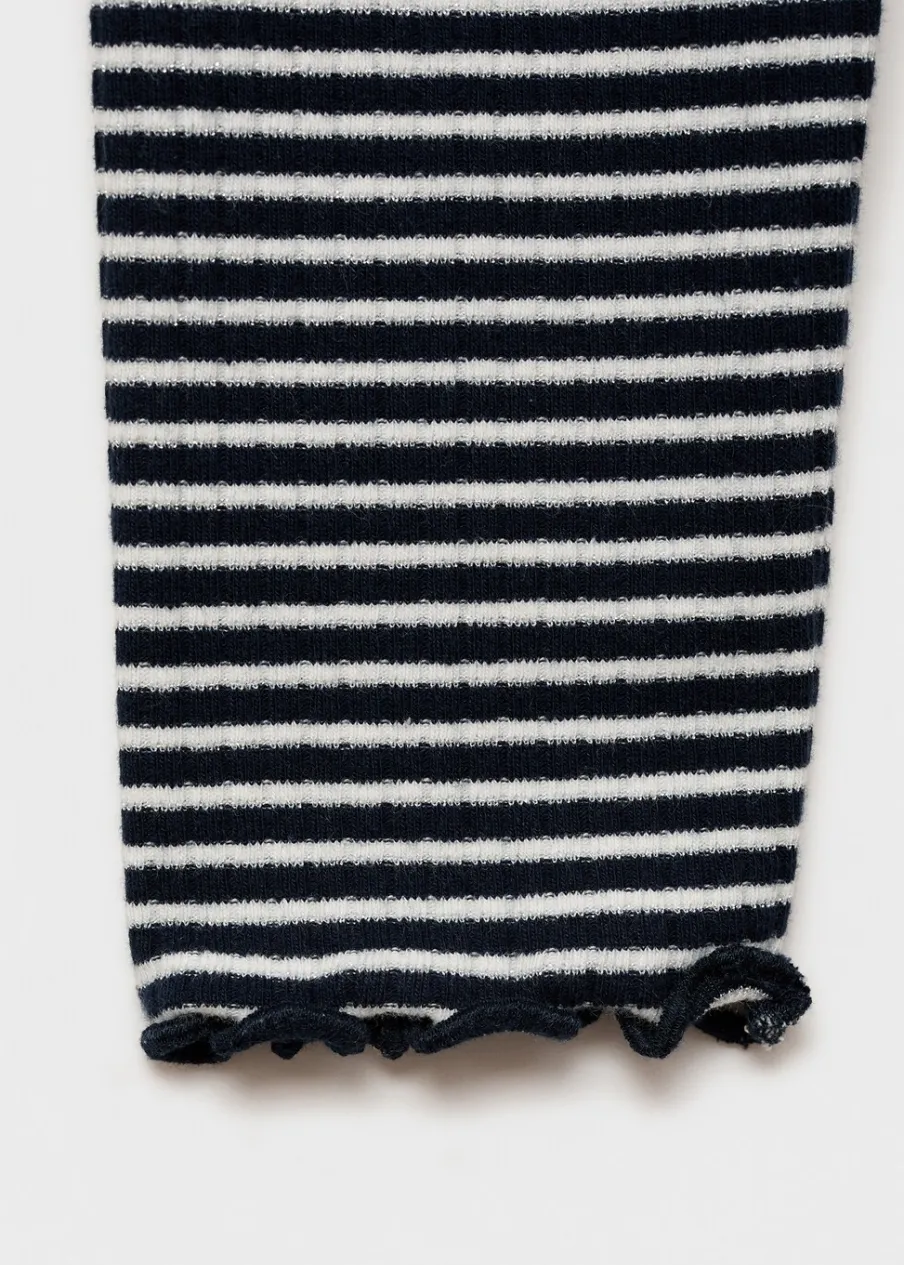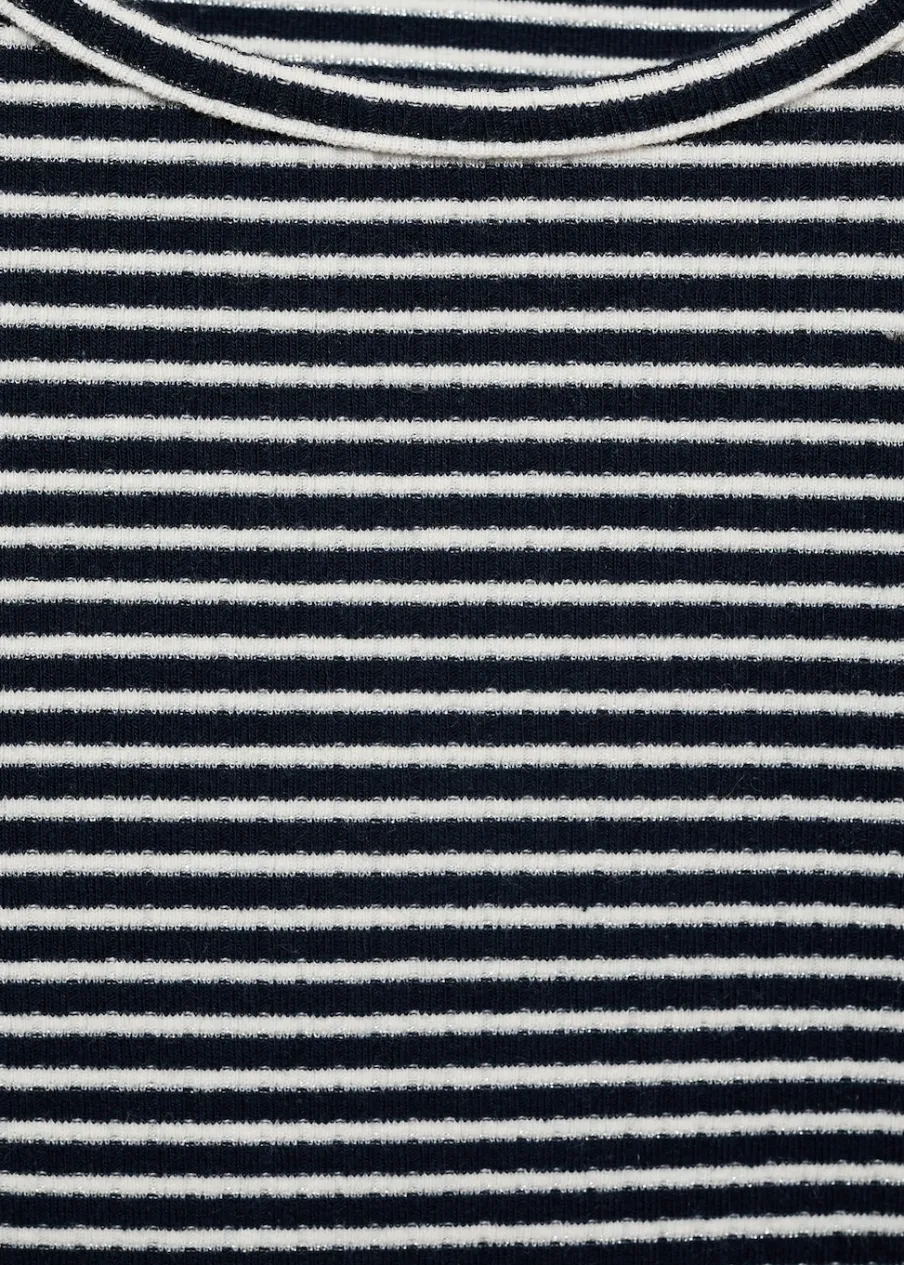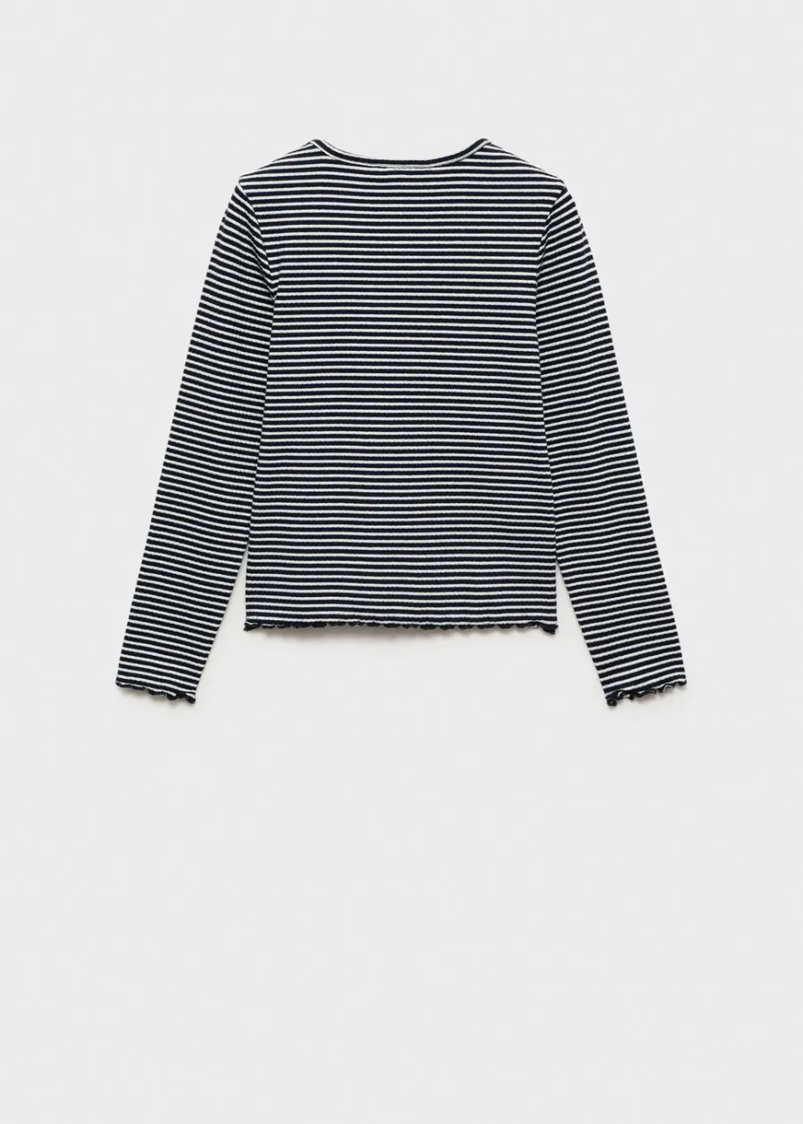 OpisTkanina bawełniana. Model prosty. Nadruk w paski. Okrągły dekolt. Długi rękaw. Muszelkowy dół.