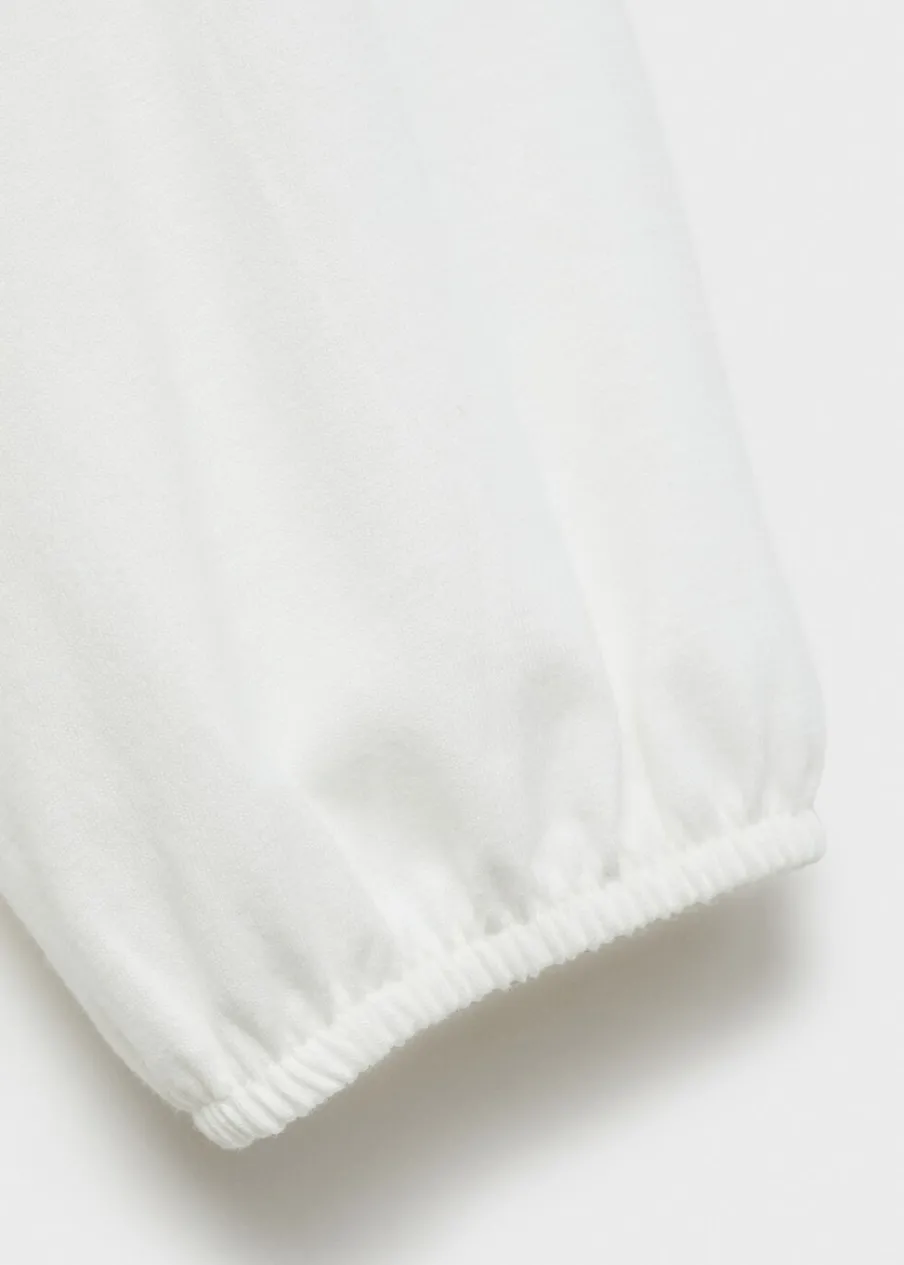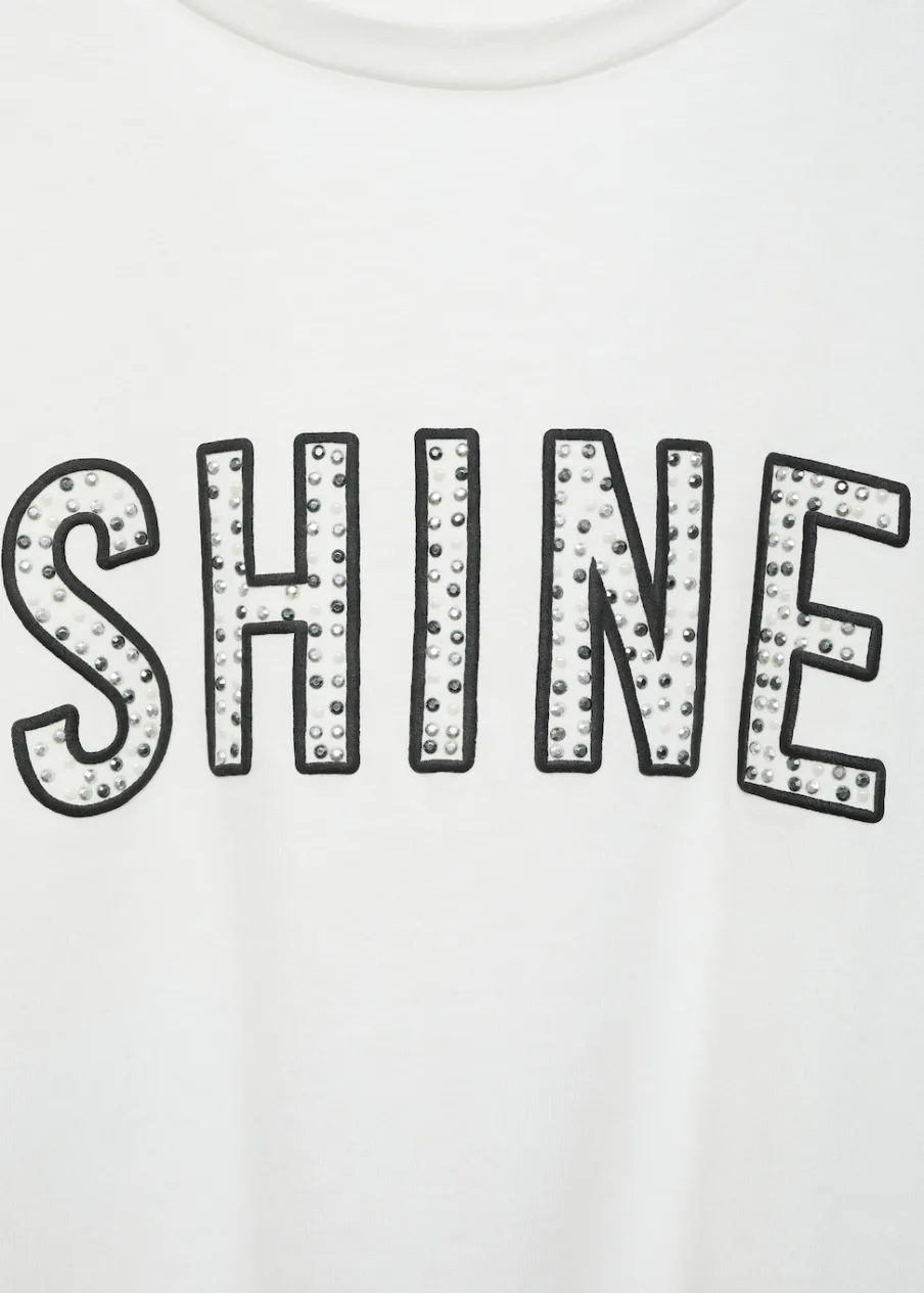 OpisBawełna 100%. Detal z koralikami. Okrągły dekolt. Z nadrukami. Długi bufiasty rękaw. Model prosty.