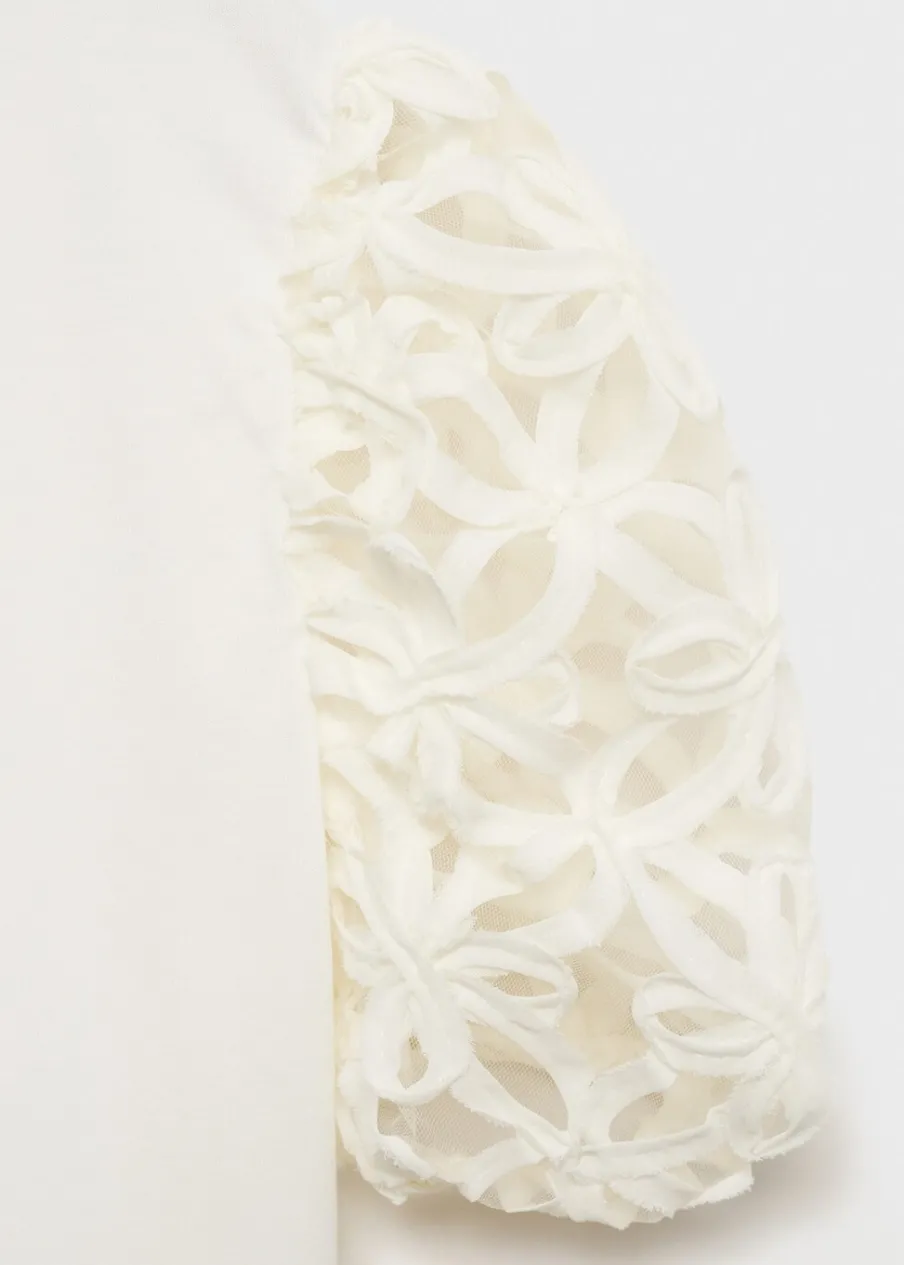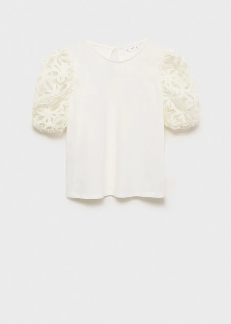 OpisBawełna 100%. Model prosty. Haftowane detale. Okrągły dekolt. Krótki bufiasty rękaw. Zapięcie na guzik pod szy…