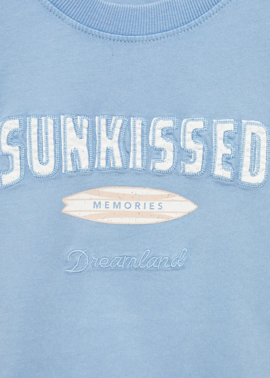 Kolekcja Powrót do szkoły. Bawełna 100%. Kolor z efektem sprania. Surferski nadruk. Haftowany detal. Okrągły dekolt. Krótki rękaw. Wysoka gramatura.