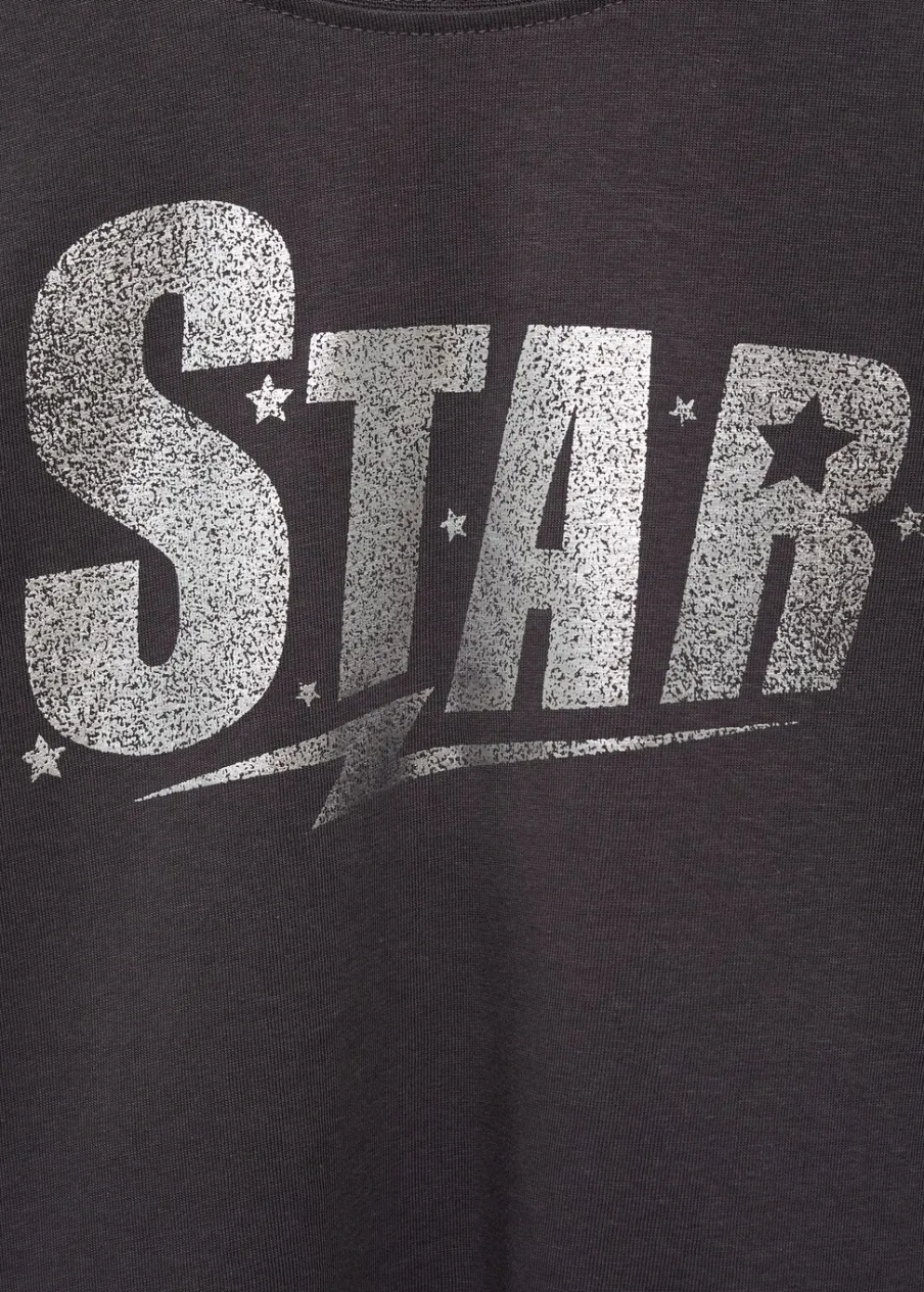 Bawełna 100%. Z nadrukami. Kolor z efektem sprania. Okrągły dekolt. Długi rękaw. Model prosty.