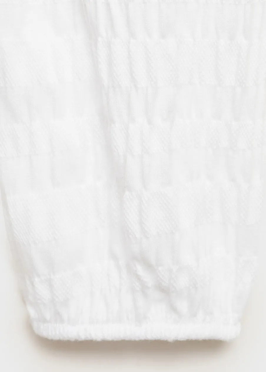 OpisTkanina z bawełną. Elastyczne marszczenie. Okrągły dekolt. Długi rękaw. Ozdobne kokardki. Zapięcie z tyłu w …