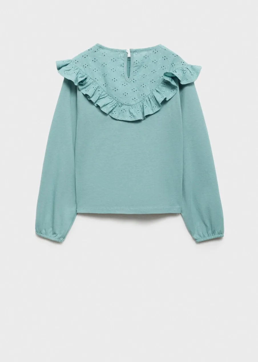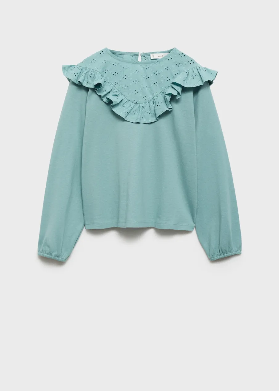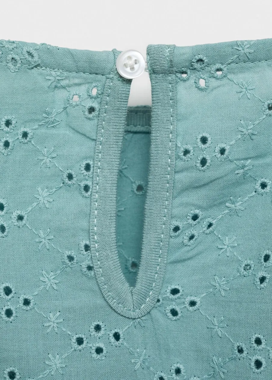 OpisBawełna 100%. Model prosty. Okrągły dekolt. Haftowane detale. Ozdobne falbany. Długi rękaw. Zapięcie na guzik …