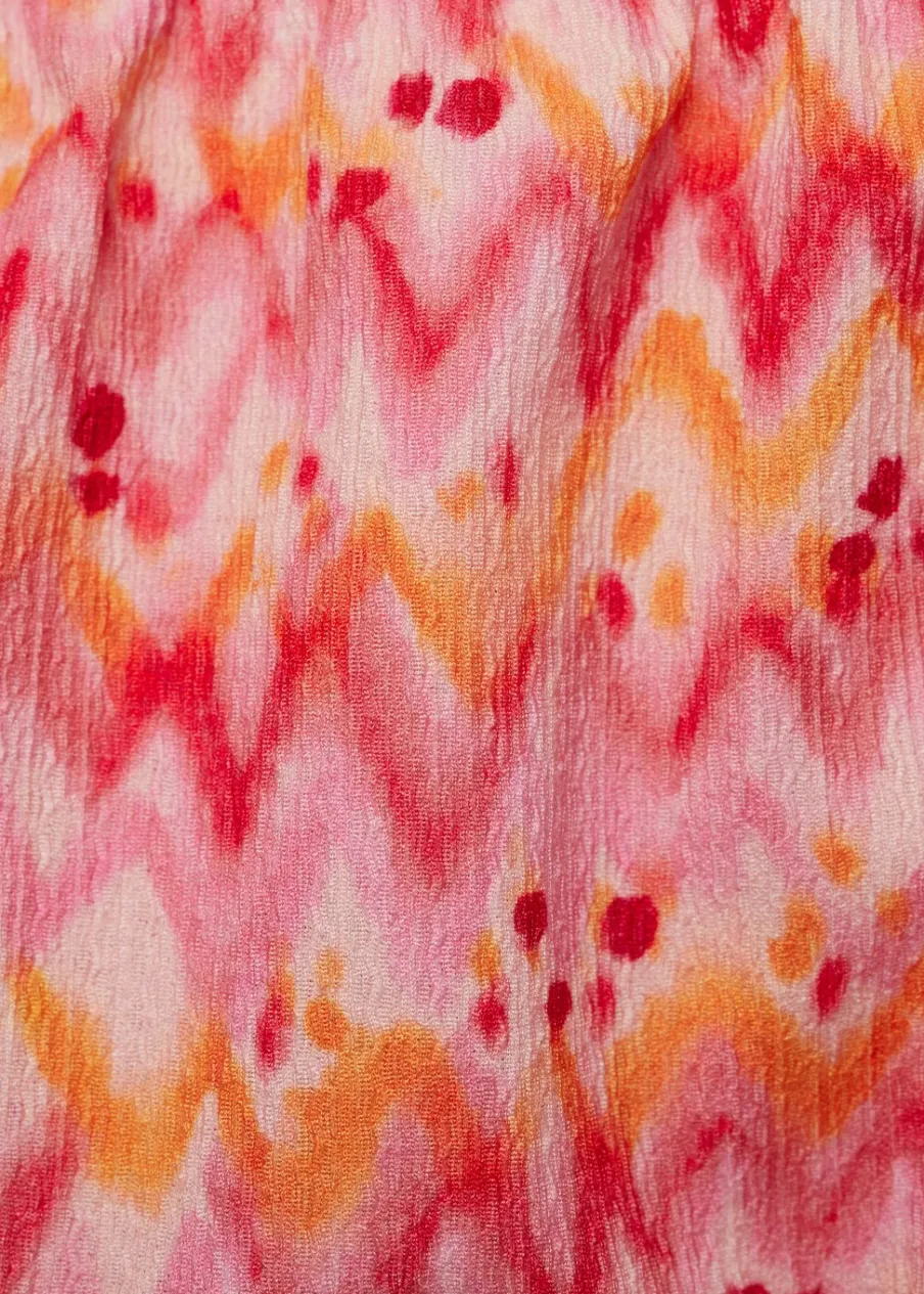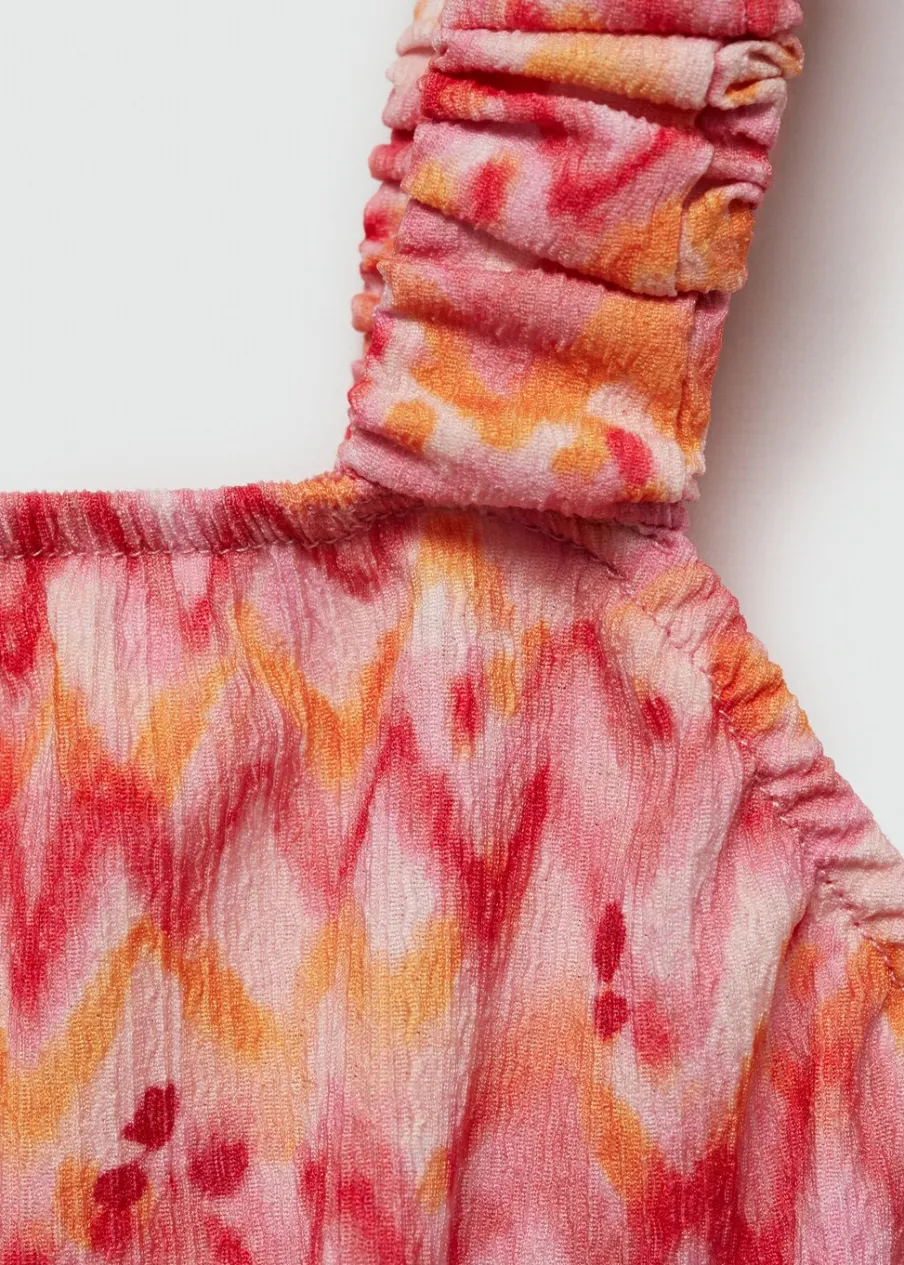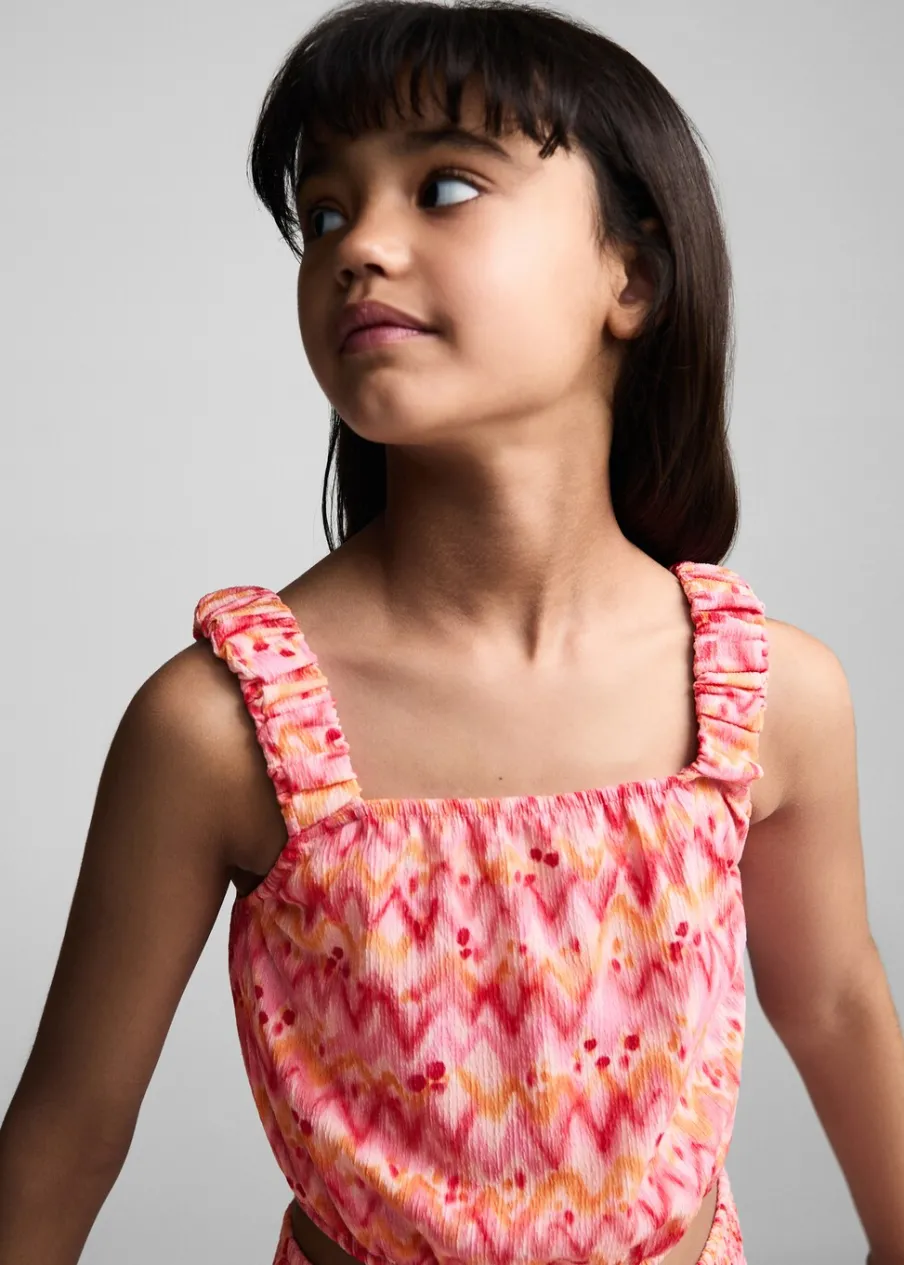 Model prosty. Krótki krój. Deseń crop. Elastyczne ramiączka. Elastyczne wykończenie. Kwadratowy dekolt. Nadruk.