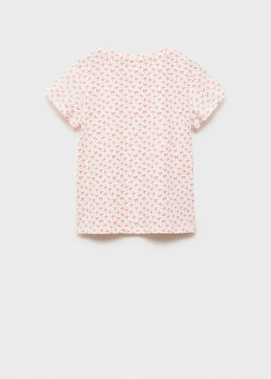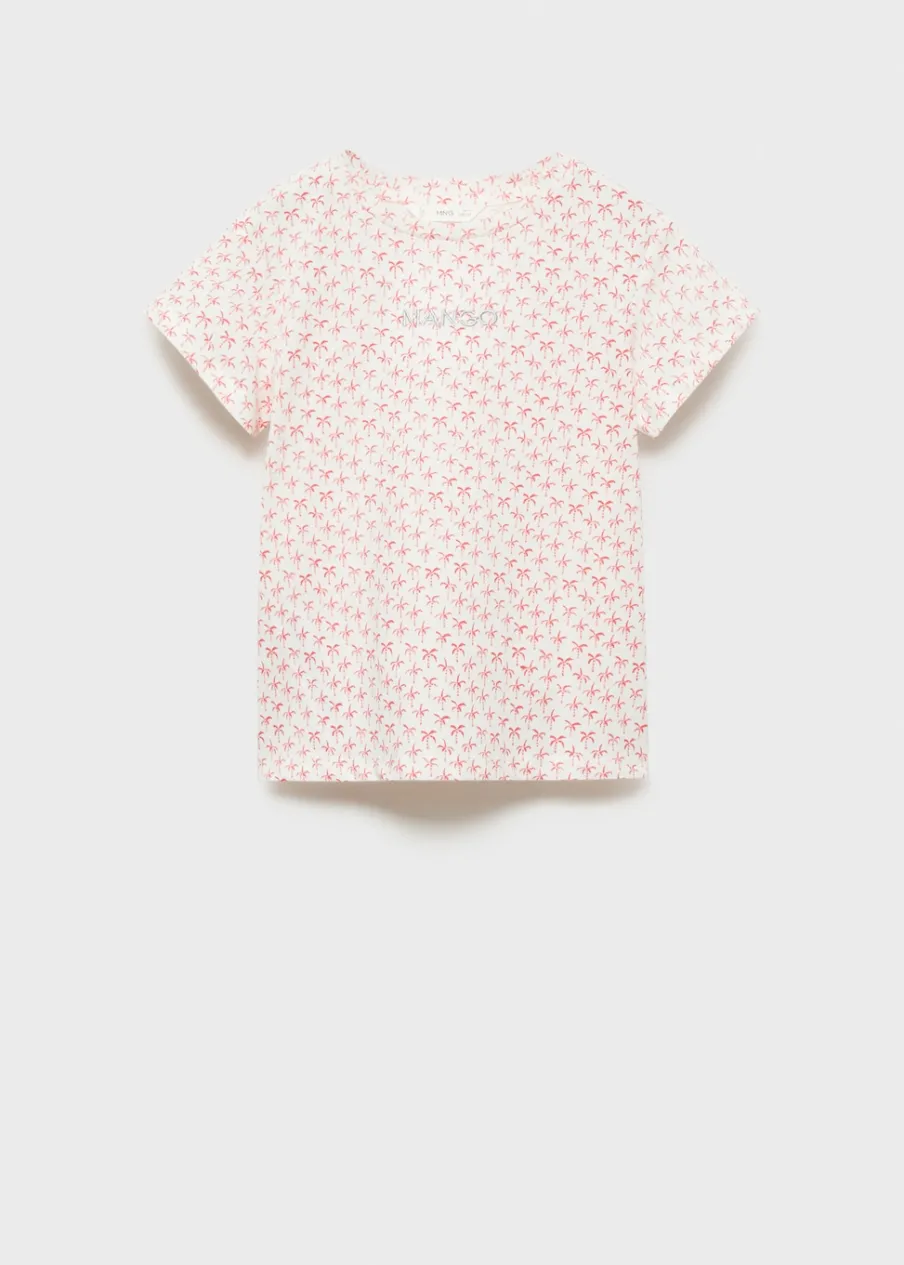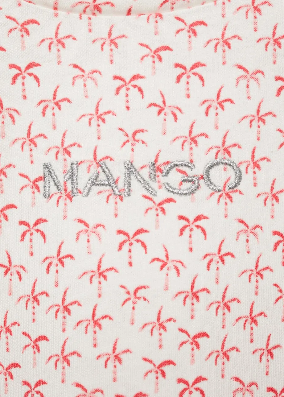 Bawełna 100%. Model prosty. Krótki rękaw. Okrągły dekolt. Kwiatowy wzór. Haft logo Mango.