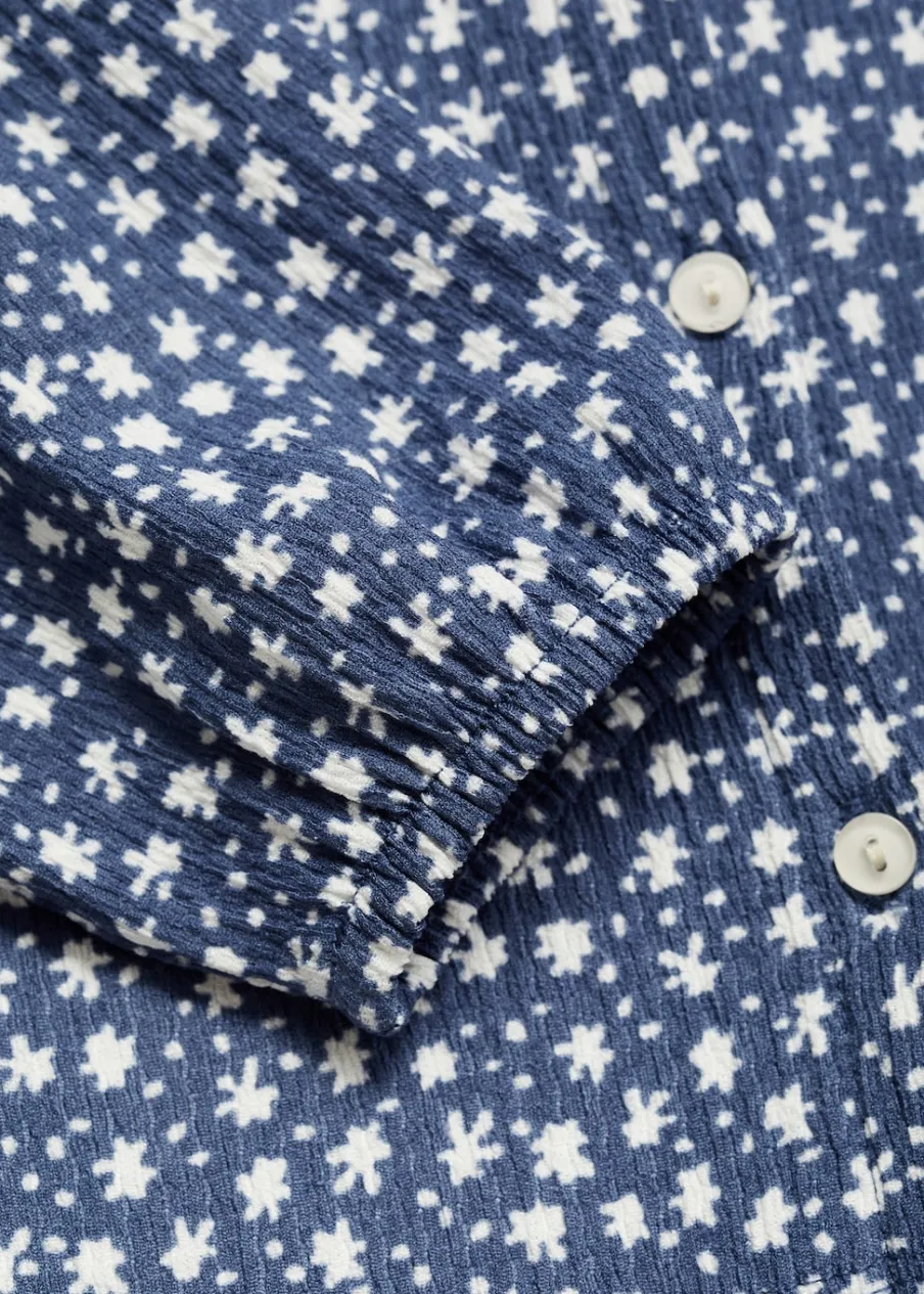 Dostępny zestaw total look. Model prosty. Nadruk. Kołnierzyk bebe. Długi rękaw. Zapięcie z tyłu na guziki.