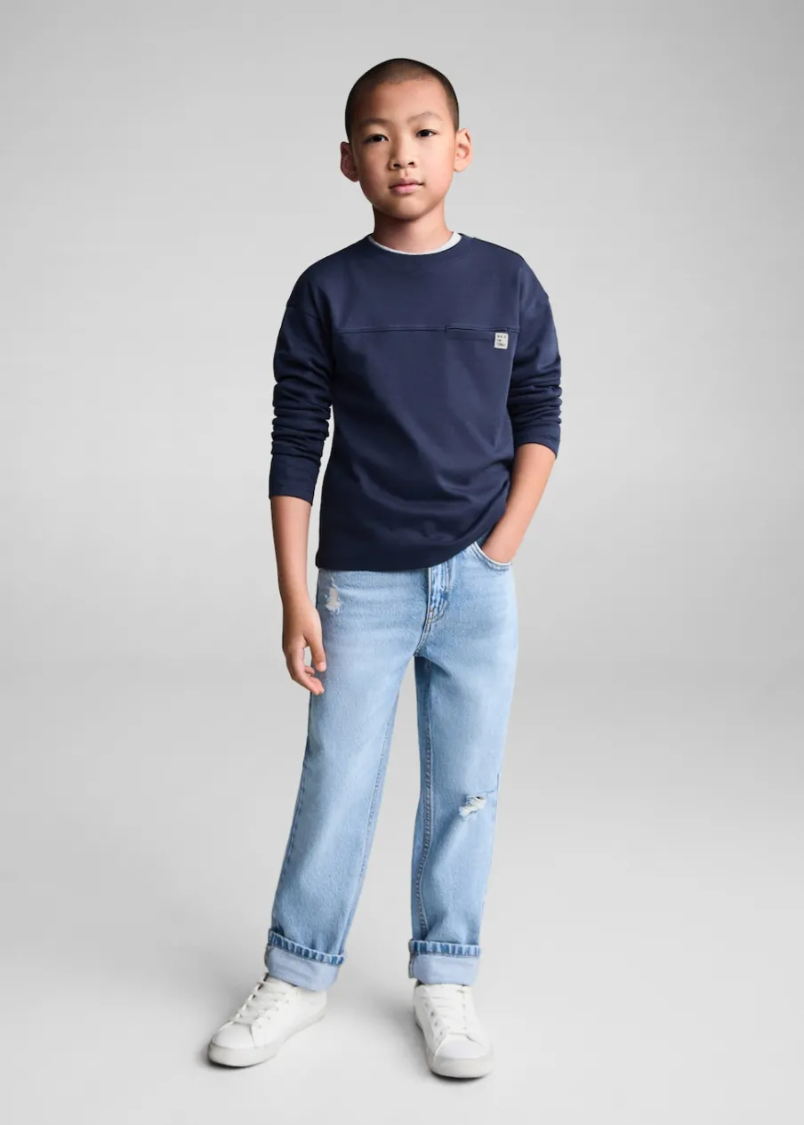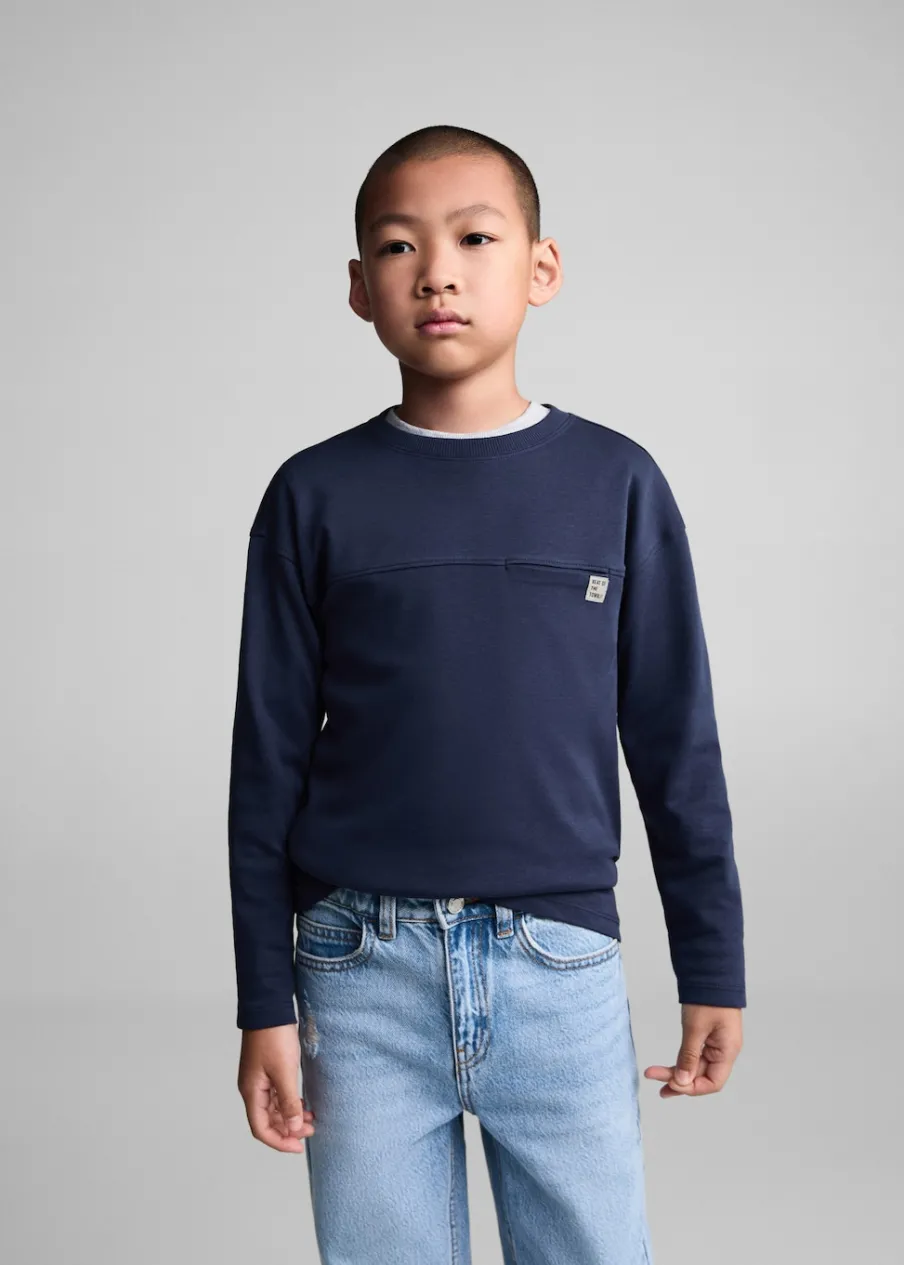 Kolekcja Powrót do szkoły. 100% bomull. Model długi. Model prosty. Ozdobna kieszeń. Okrągły dekolt. Długi rękaw.
