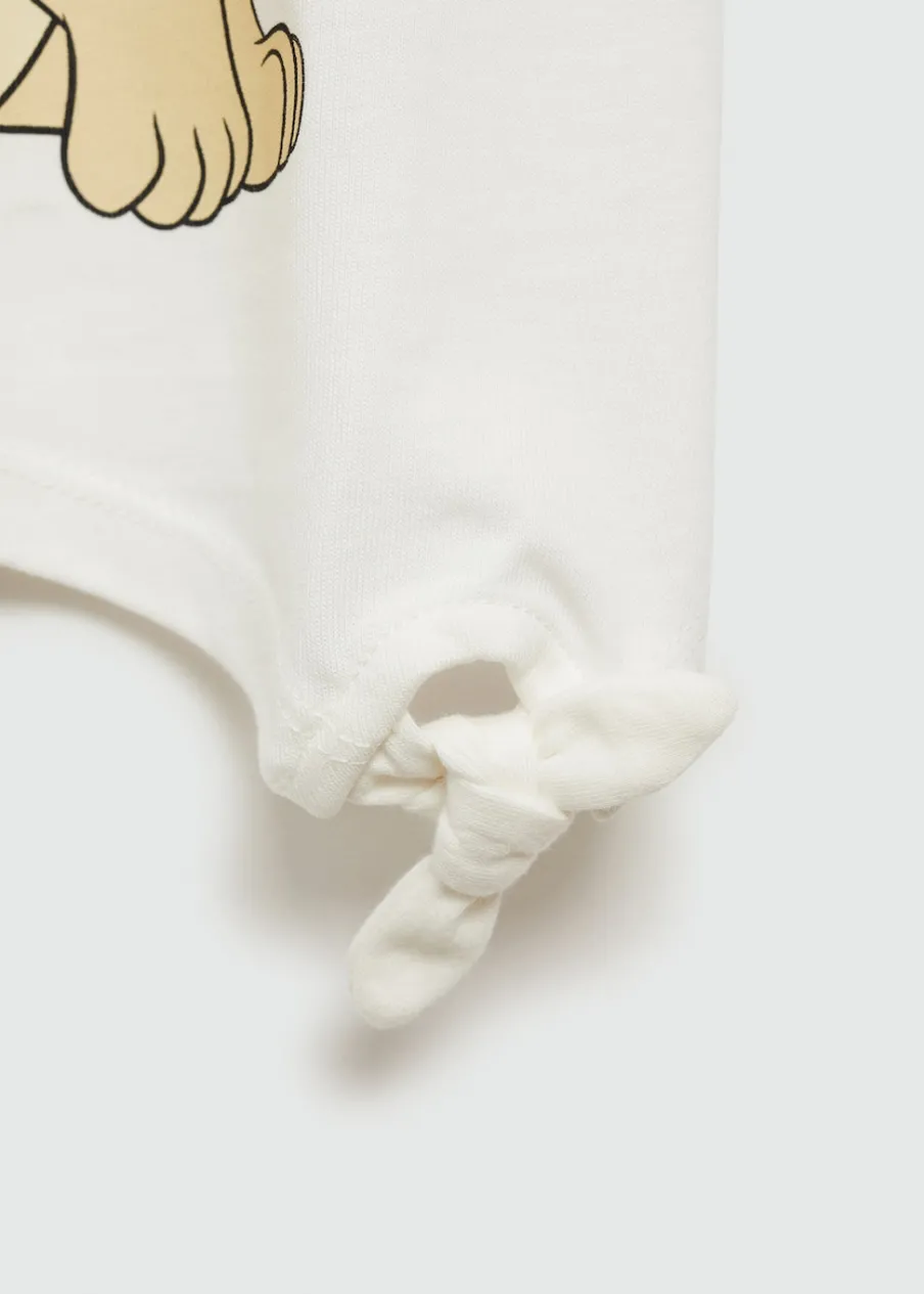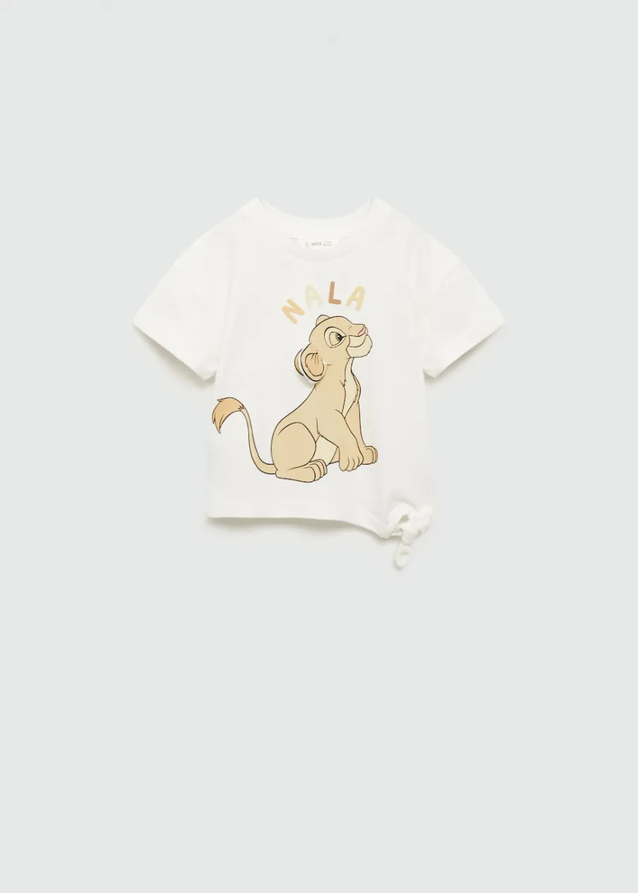 100% bomull. Nadruk Król Lew. Motywy Disneya. Model prosty. Ozdobny węzeł. Okrągły dekolt. Krótki rękaw. Licencjonowany nadruk.
