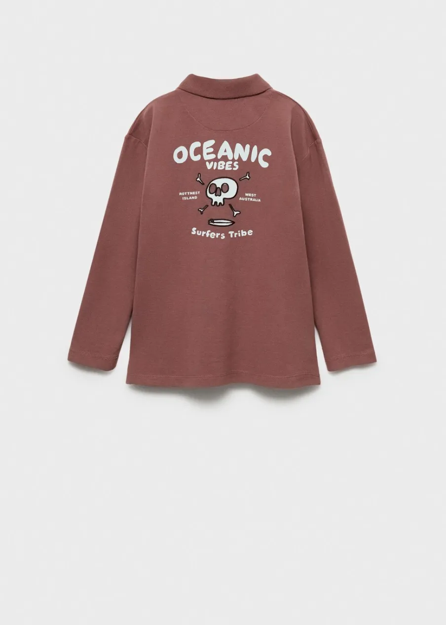 Kolekcja Powrót do szkoły. 100% bomull. Model prosty. Wzór w litery. Haftowany detal. Wzór w czaszki. Kołnierzyk polo. Zapięcie przy szyi. Długi rękaw.