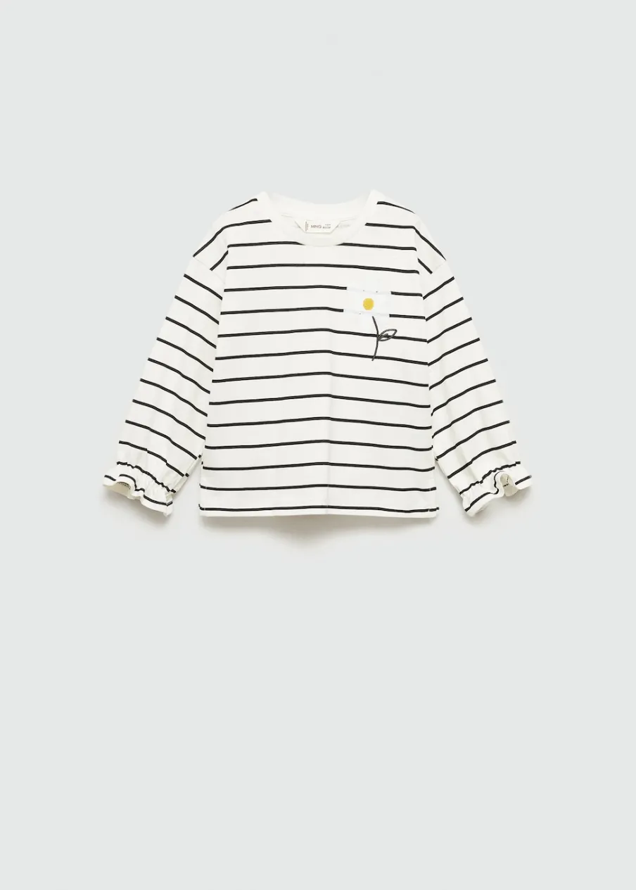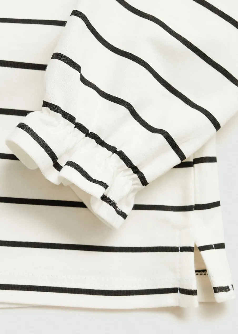 OpisModel prosty. Okrągły dekolt. Długi bufiasty rękaw. Bawełna 100%. Wzór w paski. Haftowany detal.