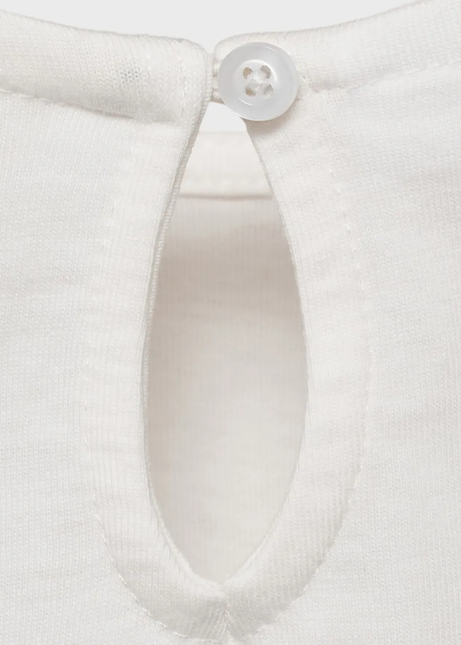 OpisBawełna 100%. Długi rękaw. Falbanki na ramionach. Okrągły dekolt z zapięciem na guzik.