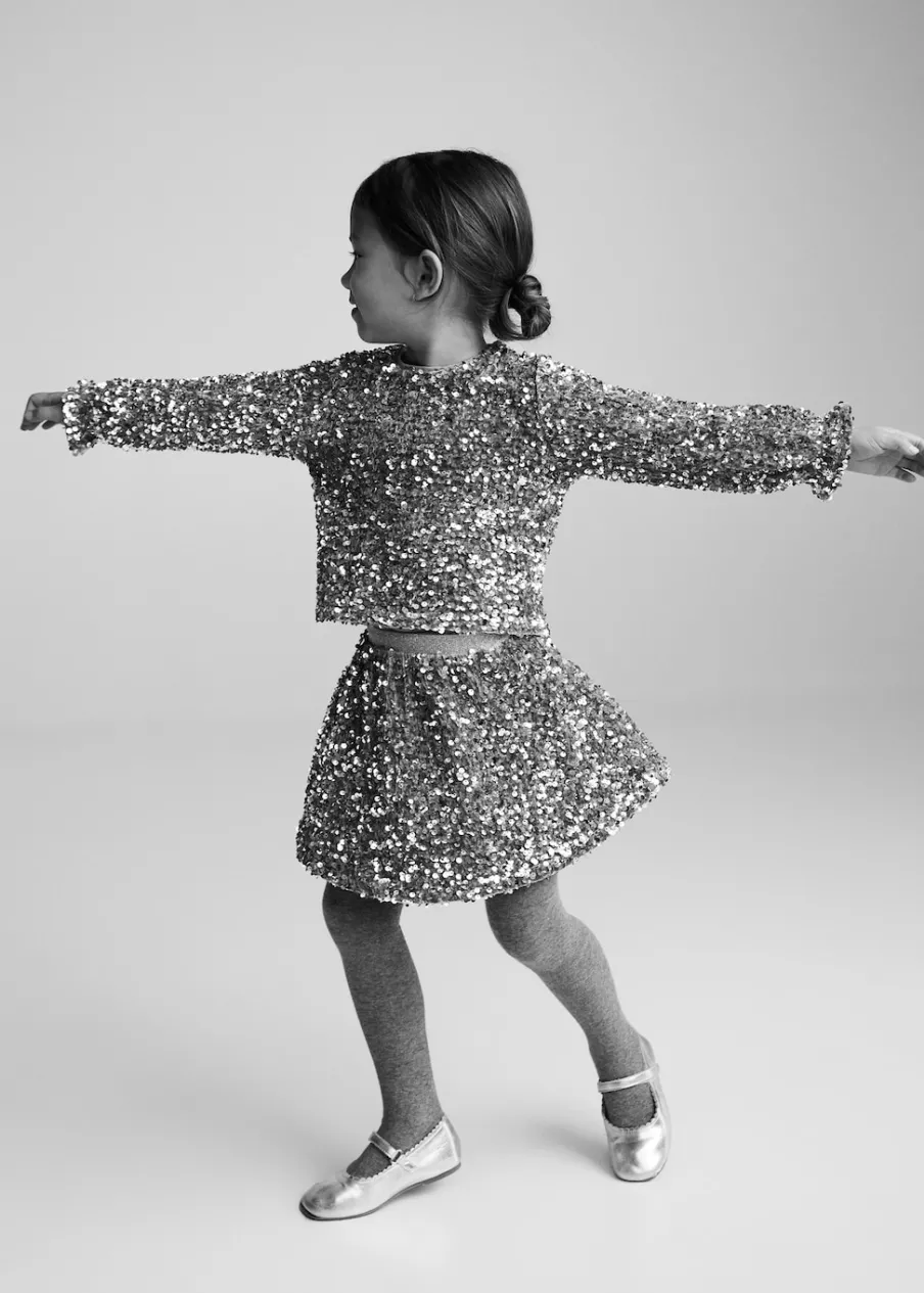 Model prosty. Cekinowa ozdoba. Okrągły dekolt. Długi rękaw. Zapięcie na guzik.
