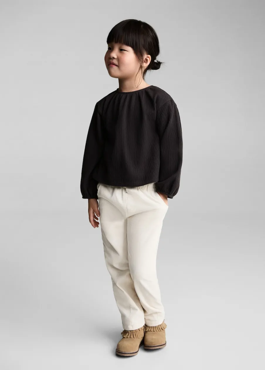 Model prosty. Okrągły dekolt. Długi bufiasty rękaw. Bez zapięcia. Bawełna 100%.