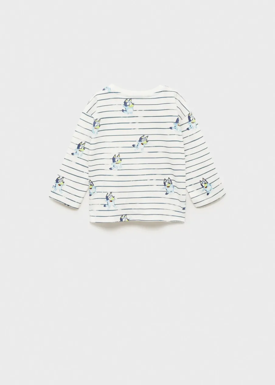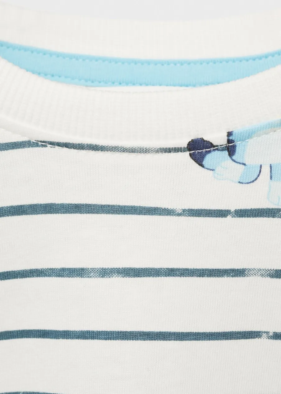 OpisBawełna 100%. Deseń w pasy. Nadruk Bluey. Okrągły dekolt. Długi rękaw. Licencjonowany nadruk.