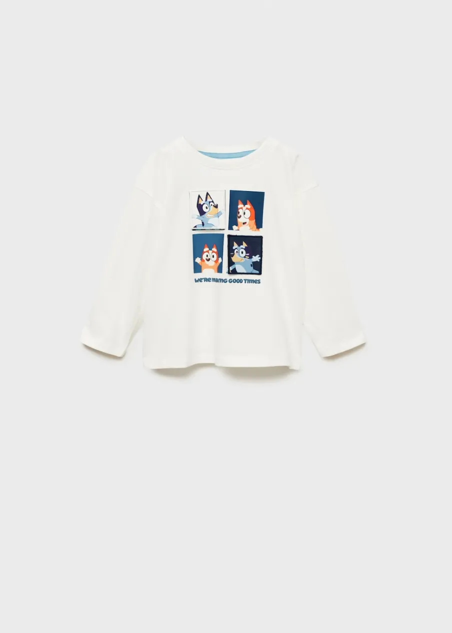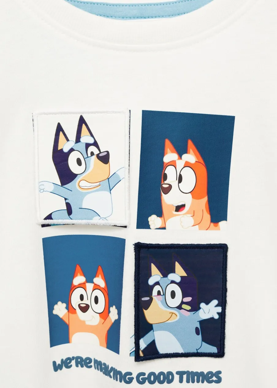 Bawełna 100%. Model prosty. Nadruk Bluey. Okrągły dekolt. Bez zapięcia. Licencjonowany nadruk.