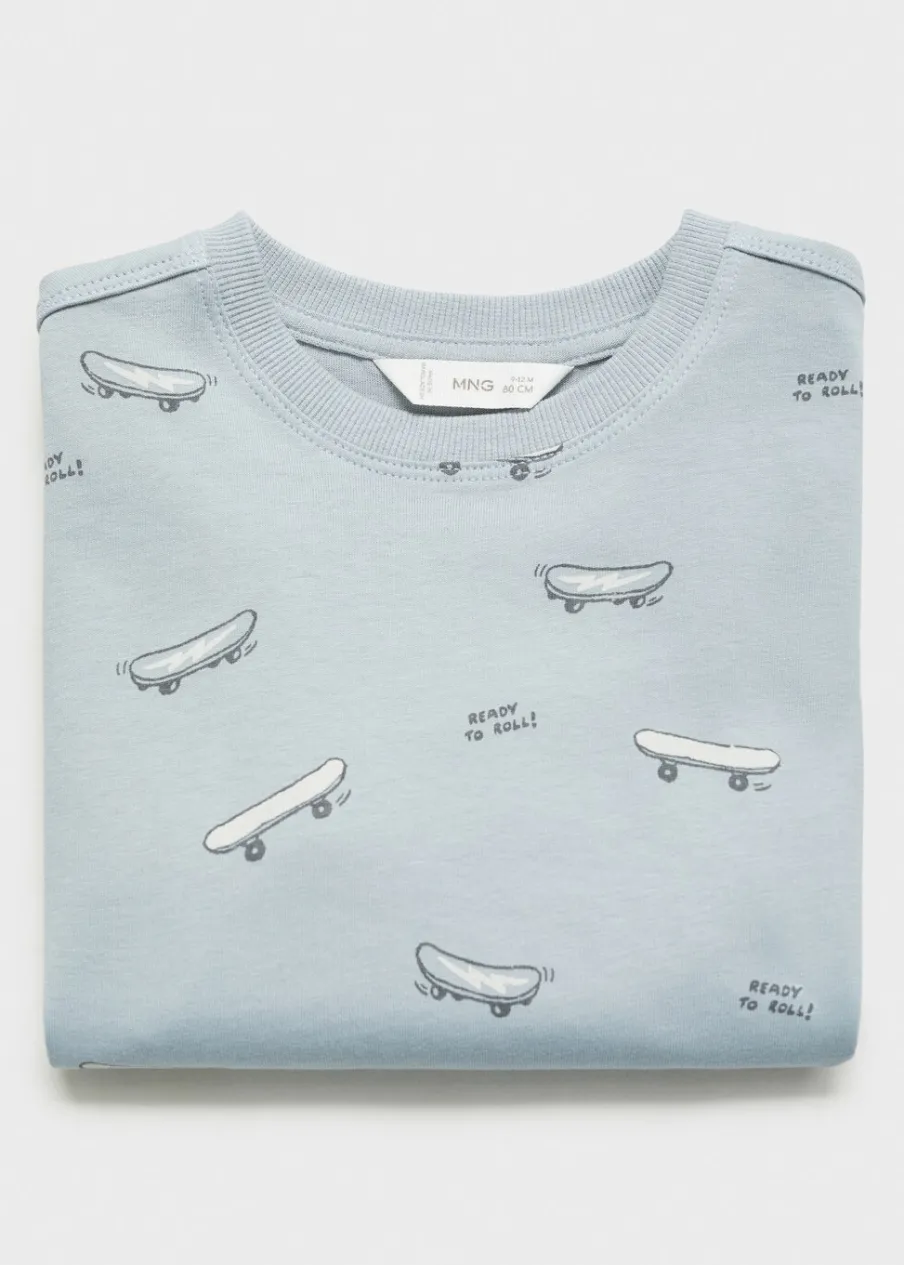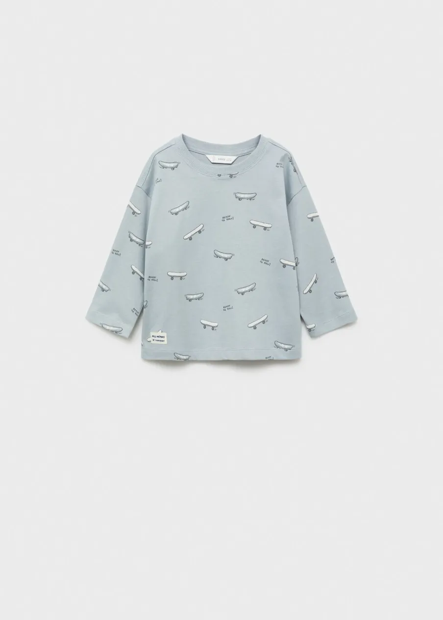 Bawełna 100%. Model prosty. Wzór skaters. Okrągły dekolt. Długi rękaw.