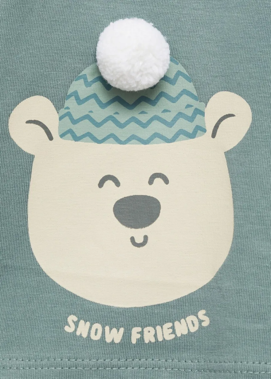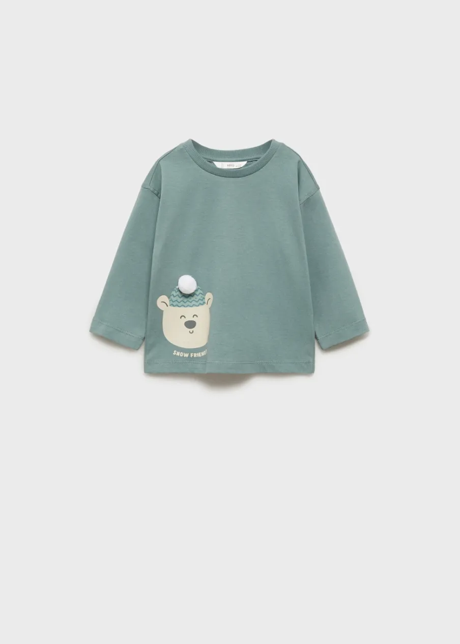 OpisKolekcja Bożonarodzeniowa. Bawełna 100%. Nadruk. Ozdobne pompony. Okrągły dekolt. Model prosty. Długi rękaw.