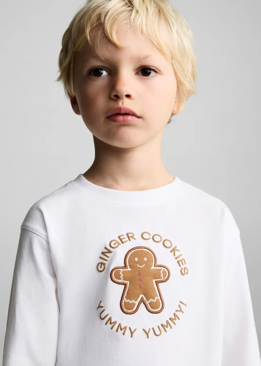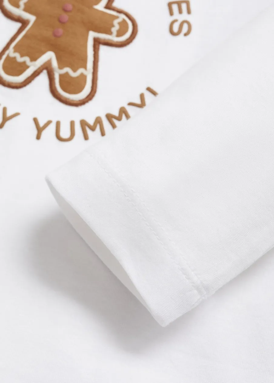 OpisBawełna 100%. Wzorzysty. Nadruk tekstu. Okrągły dekolt. Długi rękaw. Bez zapięcia.