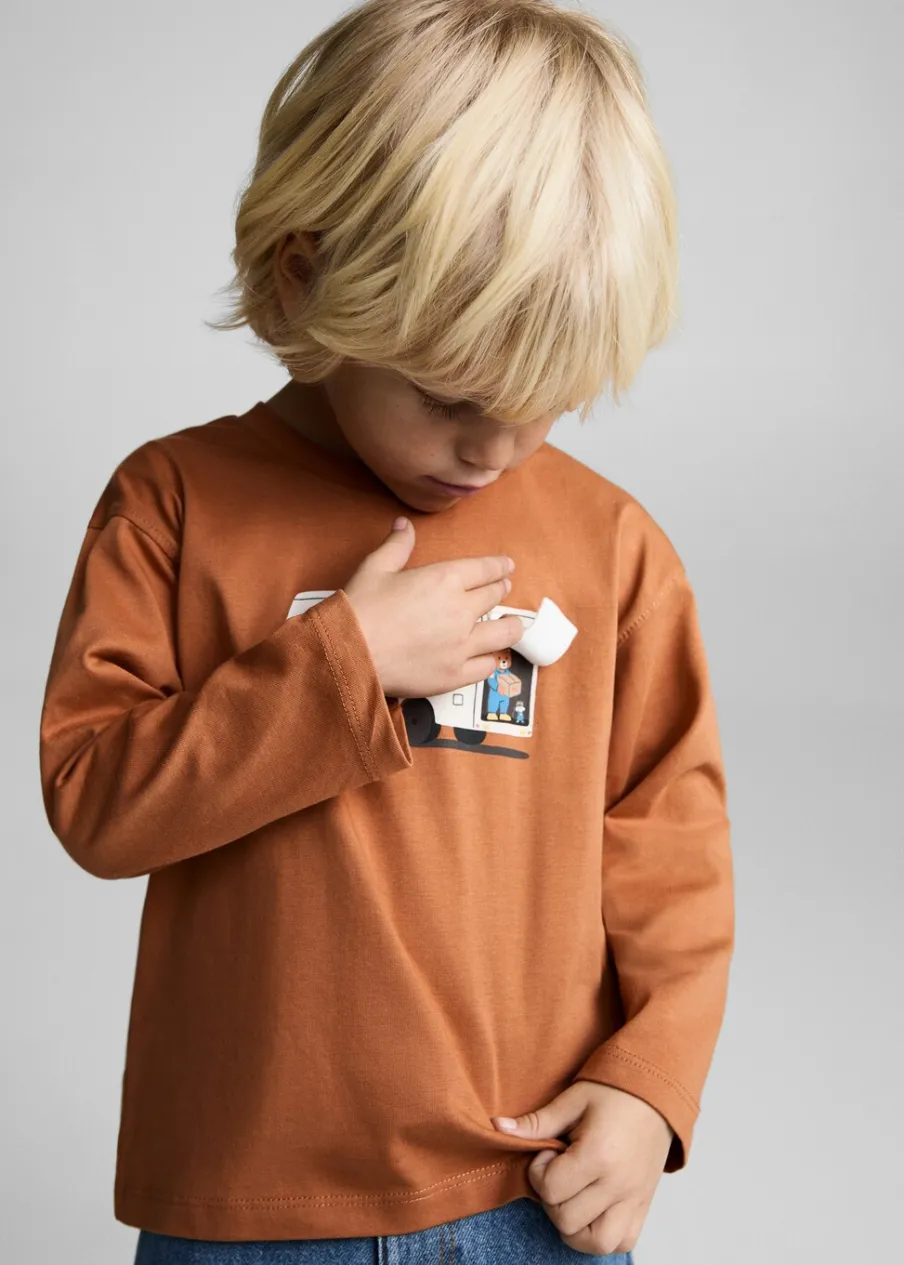 Bawełna 100%. Model prosty. Długi rękaw. Wypukły nadruk z przodu. Okrągły dekolt. Kołnierz, mankiety i dół wykończone ściągaczem.
