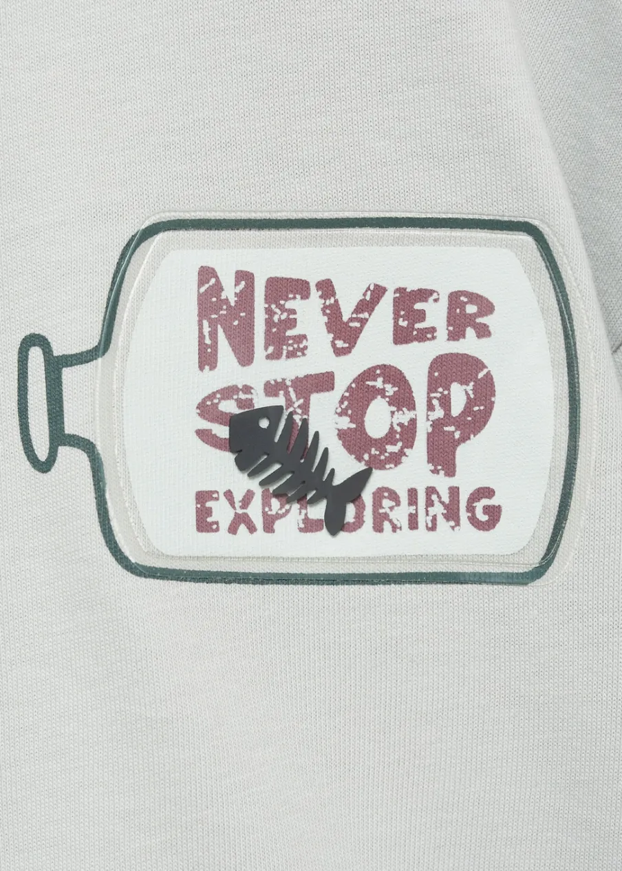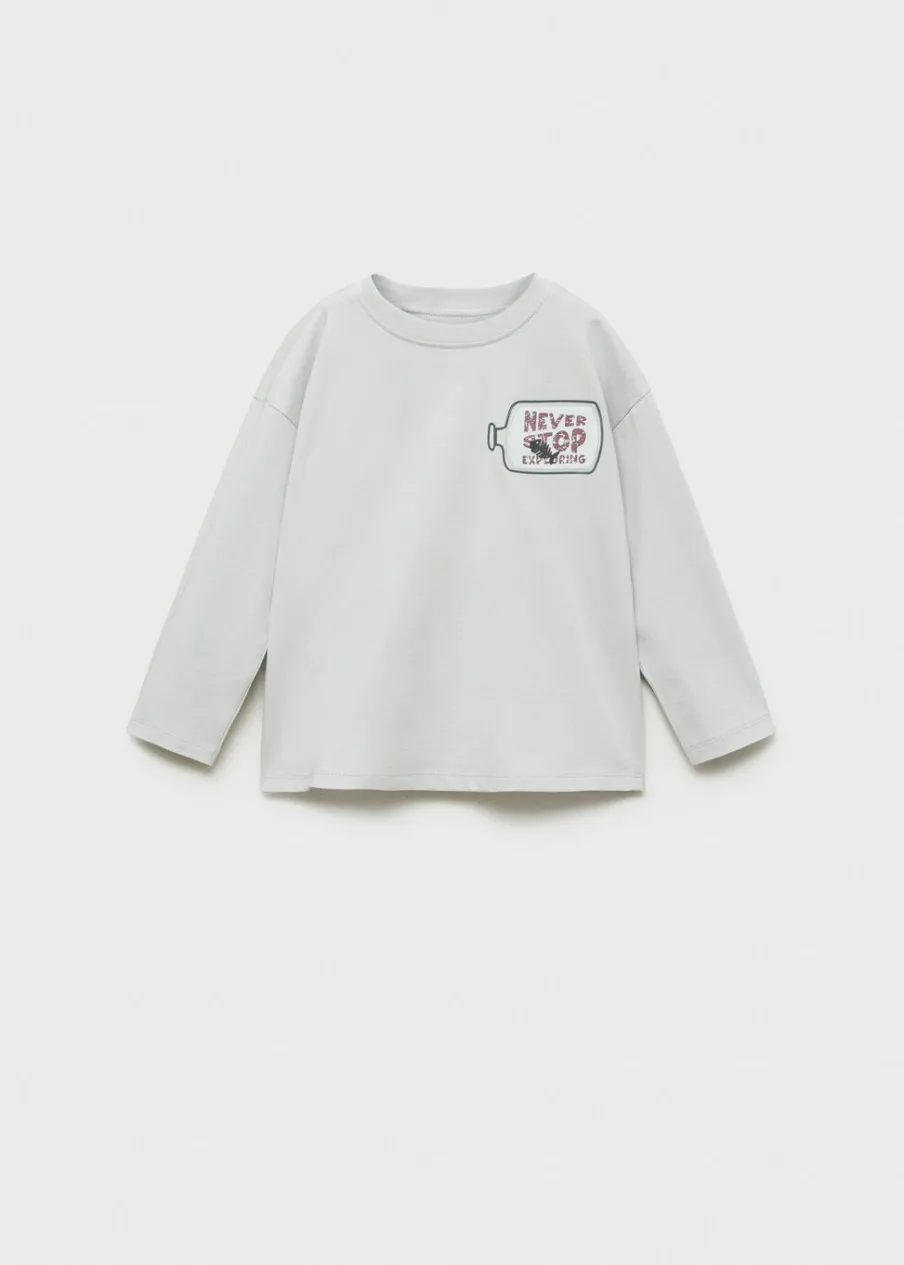 Bawełna 100%. Wzorzysty. Nadruk tekstu. Nadruk na klatce piersiowej. Nadrukowany napis z tyłu. Okrągły dekolt. Długi rękaw. Model prosty.