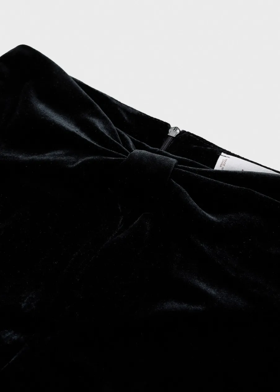 Aksamitna tkanina. Średni stan. Ozdobna kokardka. Kolekcja wieczorowa i imprezowa. Model prosty.